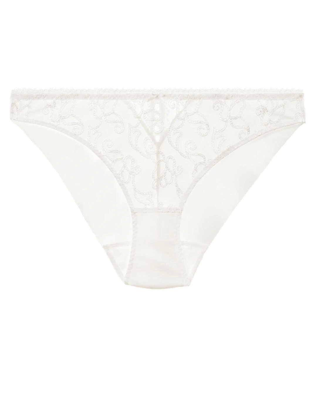 The Pour Toujours collection from Aubade is a bridal line that is certain to make you feel confident and special on your big day. The guipure lace has connotations of the buttons used on bridal gowns, combined with the floral embroidery, creating an ultra-feminine feel. The low rise moderate coverage offers a cheeky feel and the clean-cut knit fabric back reduces visibility. Matching items available from the Pour Toujours range by Aubade to complete your look.