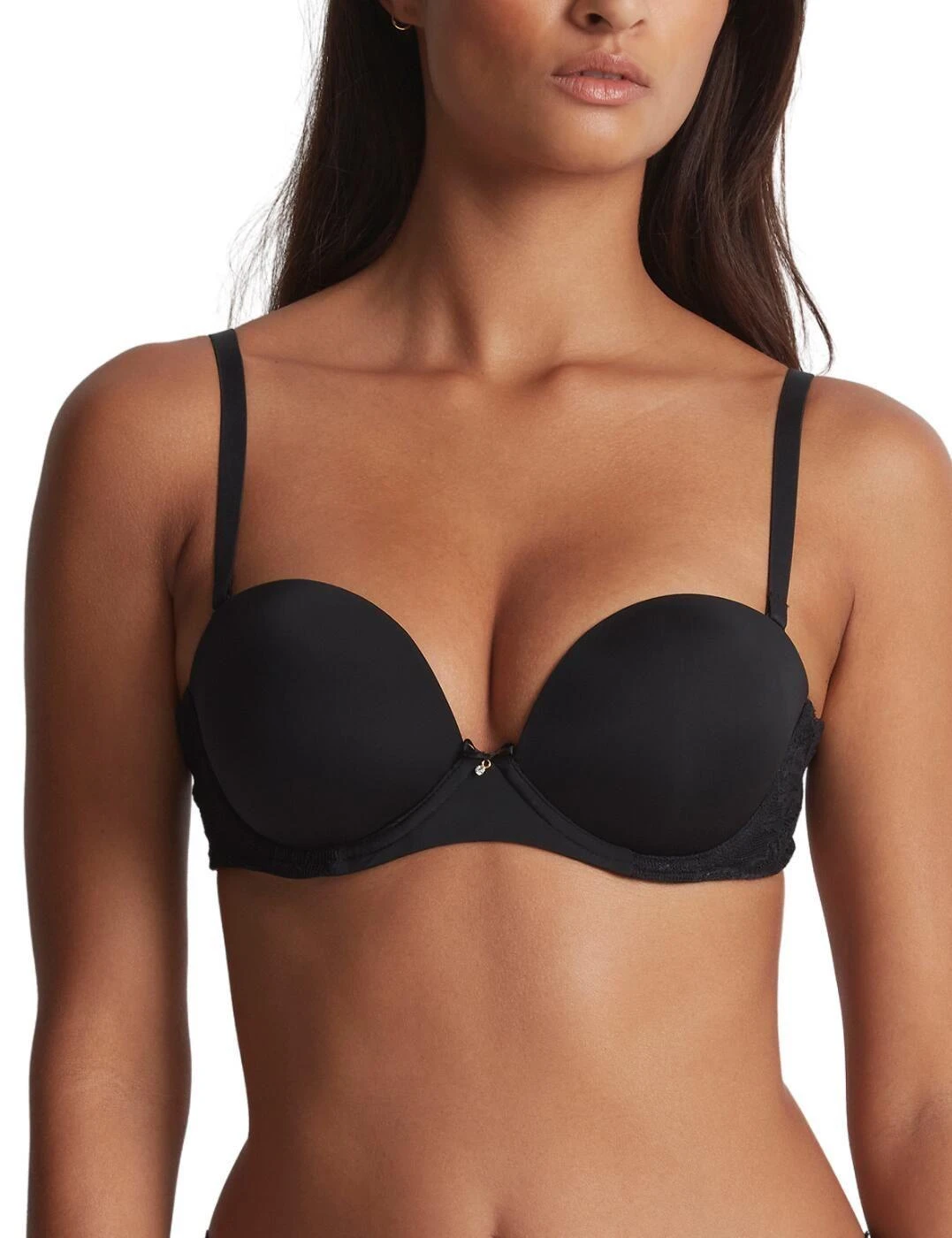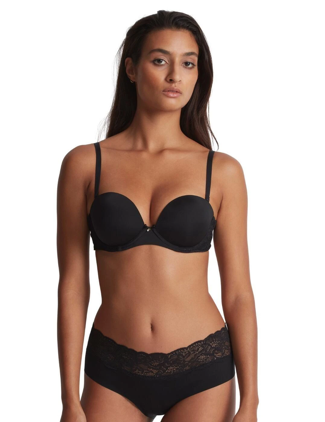 Try this gorgeous bra from the Sweetessence collection by Aubade and treat yourself to a truly versatile piece of lingerie. The bandeau style of this bra and the removable adjustable shoulder straps allow you to wear it as a standard bra or a strapless design. Add to it the smooth seamless material of the cups, and you can wear this piece to every occasion and rest easy as it will go well with any outfit. The underwired cups are moulded so that your bust is perfectly shaped and supported. As a finishing touch, this piece is decorated with delicate lace panels on the side and a pretty bow in the centre.