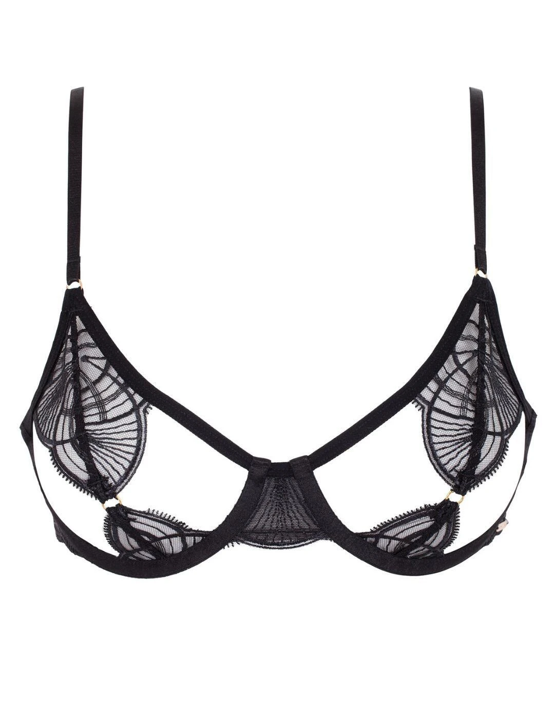 For modern and sleek looks, look no further than Bluebella’s Anya collection This deeply provocative open-cup bra is your next perfect fit for when you’re wanting to spice things up, featuring gorgeous embroidered mesh for a minimal coverage fit that is impossible to resist. A hook and eye closure and adjustable shoulder straps ensure the perfect fit with each wear. This piece boasts underwired cups for a supportive and lifted feel ensuring you can feel your most confident self with each wear. Complete this irresistible set with the available matching items within Bluebella’s Anya line.