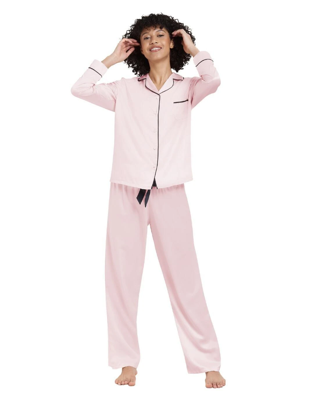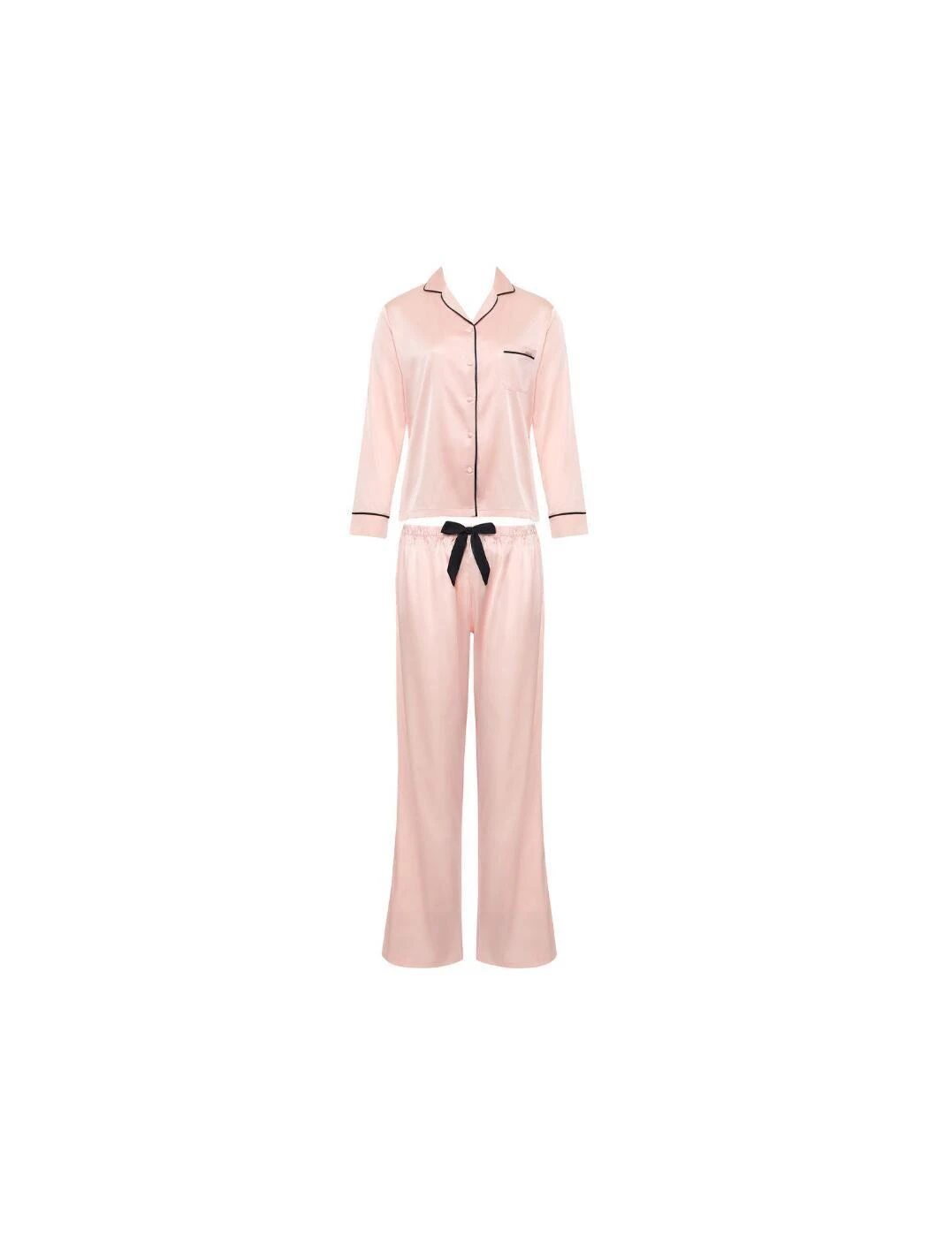 Bluebella Claudia Shirt And Trouser Set – Pale Pink/Black