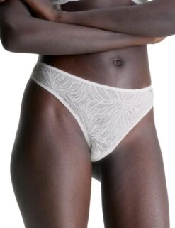 Experience the utmost femininity with the Calvin Klein Sheer Marquisette thong. This exquisite piece of lingerie effortlessly captures the essence of elegance and delicacy, perfect for women who appreciate beauty and comfort in their everyday essentials. Crafted with meticulous attention to detail, this thong is adorned with an all-over semi-sheer lace that adds a touch of sensuality to your ensemble. Its soft fabric gently caresses your skin, ensuring a luxurious and comfortable wear throughout the day. The low-rise waist flatters your silhouette, providing a seamless silhouette under any outfit. Designed for the modern, confident woman, the Calvin Klein Sheer Marquisette thong offers minimal coverage at the rear, allowing you to embrace your natural curves with effortless grace. The iconic Calvin Klein logo adorns the hip, a symbol of timeless style and sophistication. Complete the look by pairing this thong with the matching lingerie from the Sheer Marquisette collection.