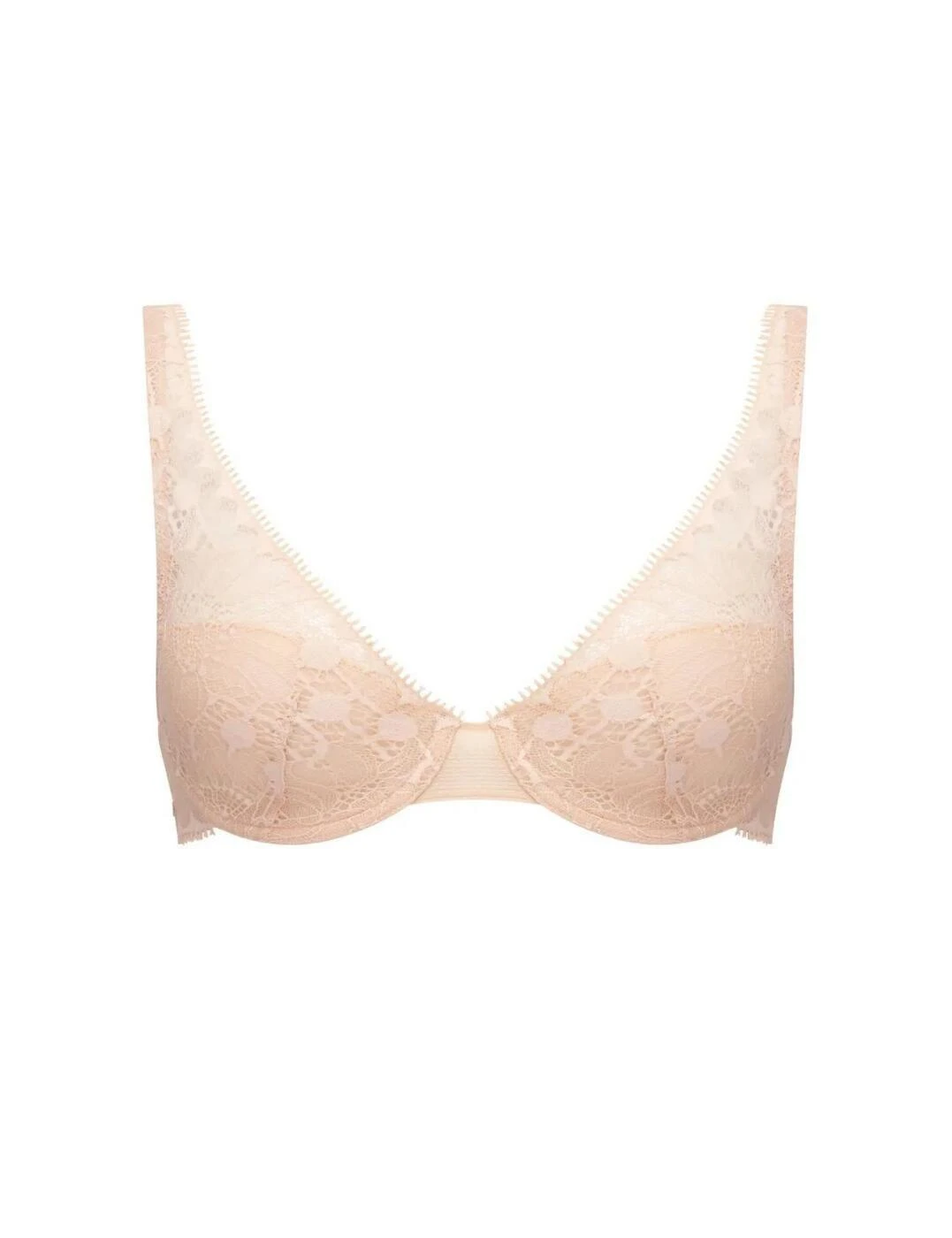Give your everyday lingerie an elegant and sophisticated look with the Day to Night collection by Chantelle. This gorgeous bra features comfortable underwired spacer cups, making sure that your bust is supported and beautifully shaped. The breathable material is covered by delicate lace, which extends to the adjustable shoulder straps, creating an alluring plunge decolletage. The feminine style finishes with a cute eyelash trim on the neckline and the bottom of the underband.