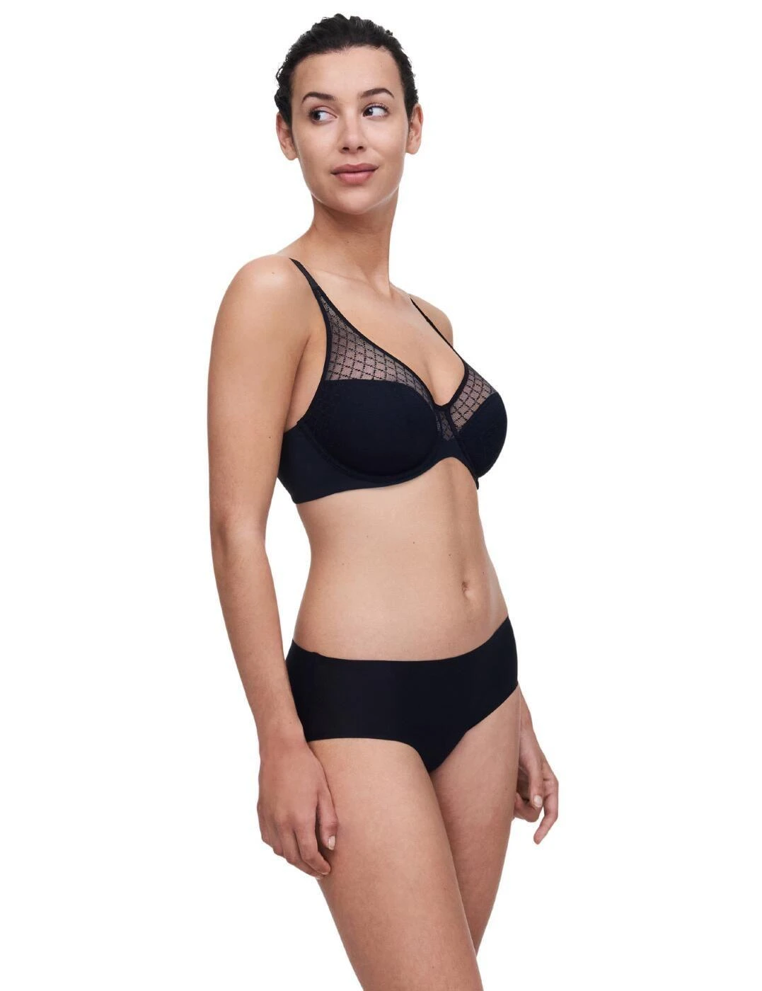 Transform your lingerie collection with the Chantelle Norah Chic moulded bra, the perfect combination of luxury and comfort. As soon as you slip it on, you’ll feel a sense of pure support with its full cup coverage. The graphic lace design adds a touch of elegance, making this bra a statement piece in your wardrobe. But don’t let its beauty distract you from its functionality the 3 part cups and underwiring ensure maximum support and shape, while the non-padded material guarantees unmatched comfort. Crafted to perfection, this bra features a moulded design lined with rigid tulle, giving you a seamless silhouette under any outfit. Its adjustable shoulder straps and hook and eye closure provide a customizable fit, making it suitable for any body type. Complete your luxurious look with the matching coordinates, and experience the ultimate sensation of luxury basic lingerie.