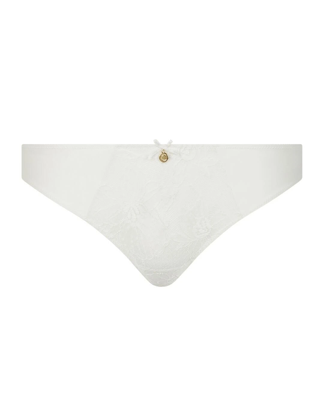 For seductively chic lingerie in classic styles, look no further than the Orchids tanga brief by Chantelle. Adorned with enchanting floral lace for an alluring semi-sheer effect, these briefs offer a low-rise waist and minimal rear coverage to highlight your curves and create a sleek and sultry silhouette. The lined front ensures modesty while remaining seamlessly smooth against your skin, with a teasing cut-out and buckle detail at the back that promises a playful look. At the front, a delicate Chantelle-branded jewel and bow exude feminine sophistication. Finished with elastic at the waistband for all-day comfort, these briefs look and feel even better when worn with coordinating Orchids lingerie.