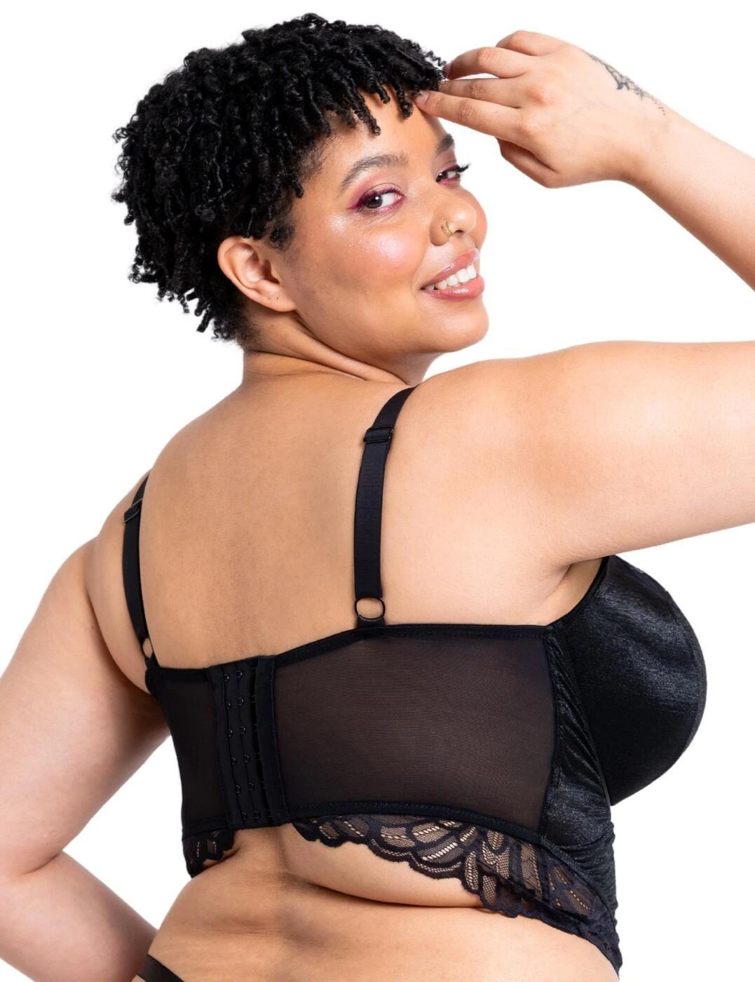 Indulge yourself in the elegant designs of the Boost Bomshell padded balcony longline bra by Curvy Kate. Featuring a lightly padded balcony neckline with a stretch lace top, this is the perfect choice for women who love the more glamorous things in life. At the centre of the bra is a keyhole detail for a lighter look with a small silver charm to add a dash of class to this gorgeous ensemble. Furthermore, a subtle shimmer covers the cups and lace creating a velvet appearance and stretch lace panels which hug your waist to a flattering effect. Matching coordinates are available from the Boost Bomshell line to complete the look.