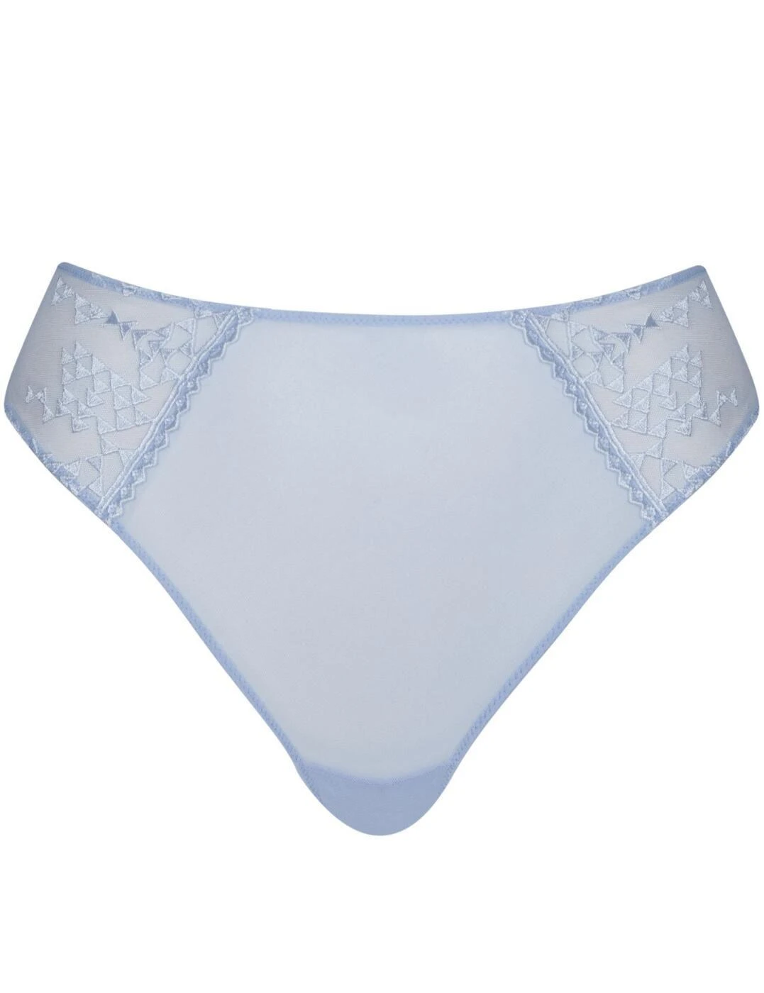 Flaunt your curves in this beautiful deep thong from the Centre Stage collection by Curvy Kate. Featuring sheer mesh panels for a flirty and fashionable feel, while the lined gusset ensures modesty and comfort. Stunning geometric embroidery elevates this thong, adding luxury to your everyday lingerie collection. Minimal rear coverage ensures a playful style, while the high-rise waist creates a flattering silhouette. With a high-cut leg design this further flatters your shape. Pair with the coordinating bra from the Centre Stage range to complete this fabulous look.