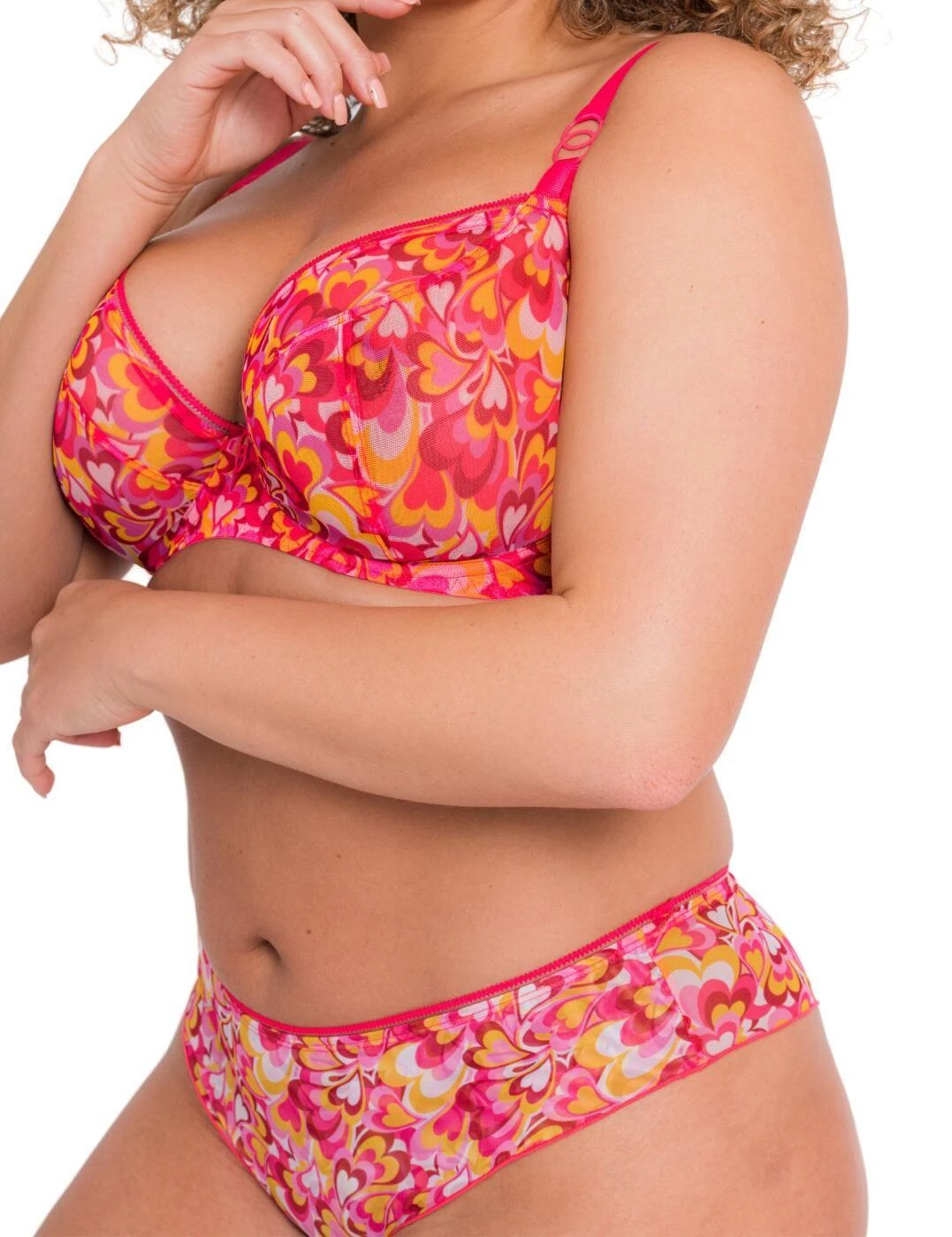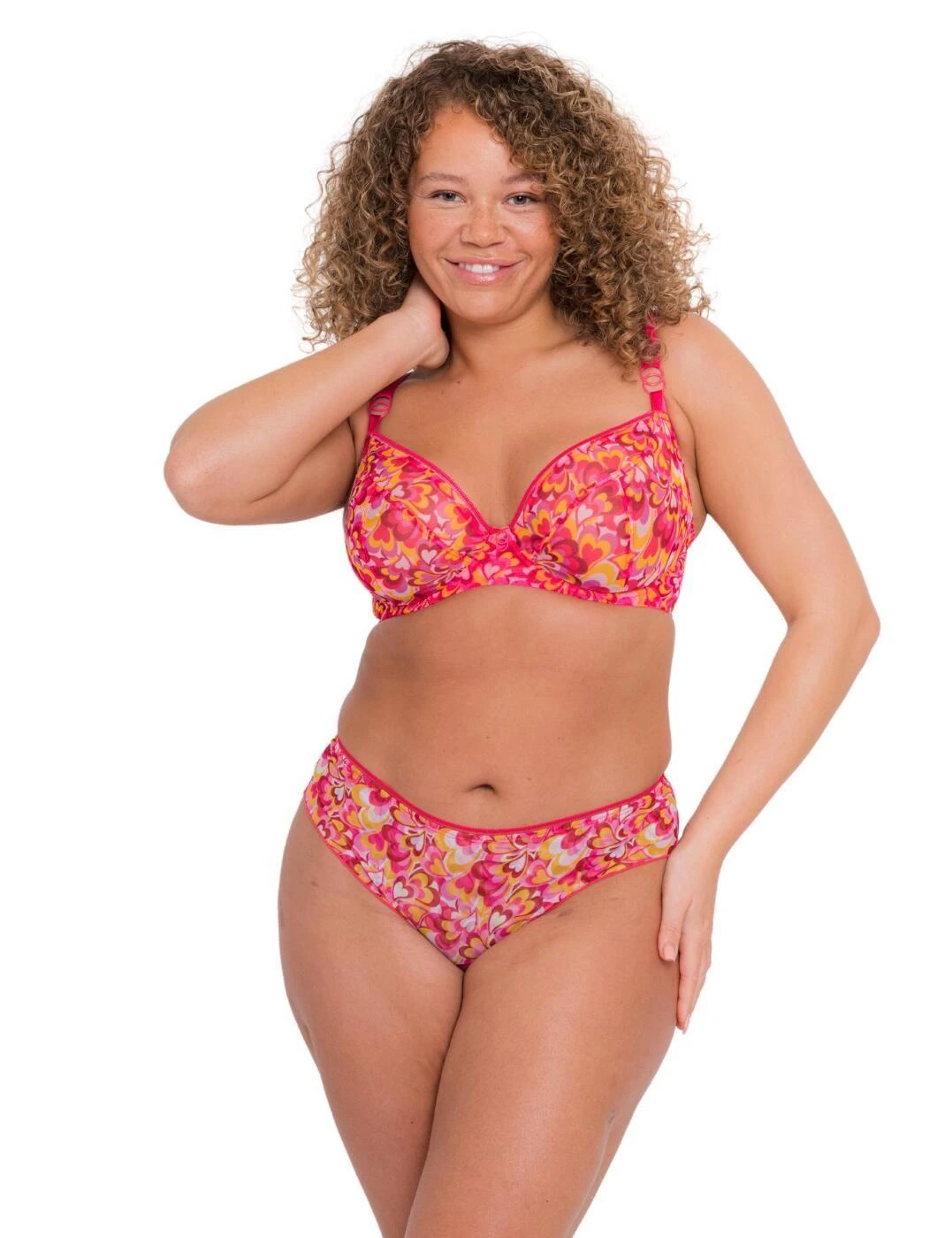 A comfortable and flattering piece, what more could you want? This short brief comes to you from the Lifestyle collection by Curvy Kate. The piece is elasticated throughout with stretch mesh to ensure a lightweight and natural feeling fit. Extra lining is used at the front for added modesty. The brief has a hipster cut, meaning it has medium cut legs, so it sits higher on your hips and adds a little extra cheeky exposure. The mid-rise of the brief ensures it sits comfortably on the top of your hips. Fine trims top the piece for a feminine touch.