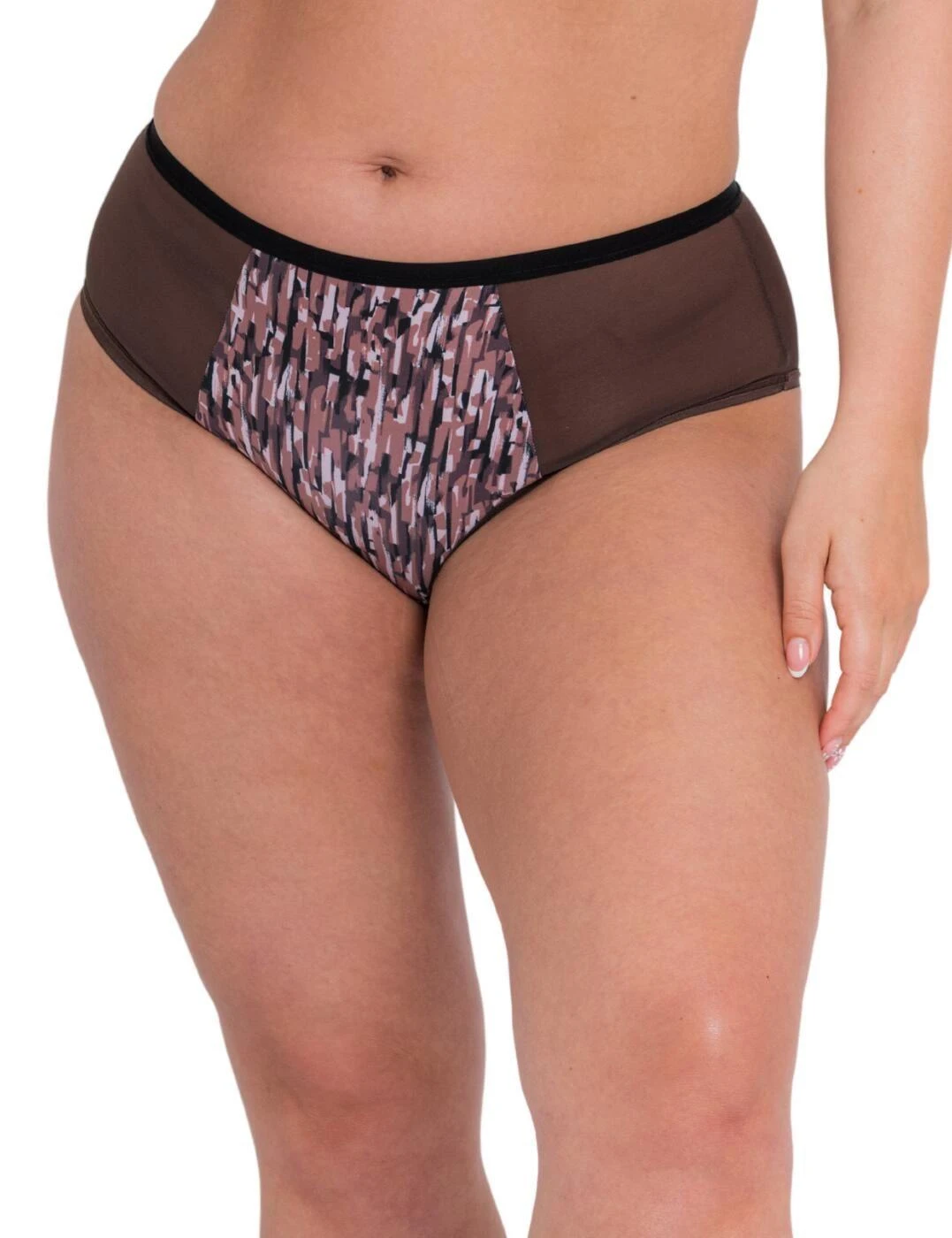 Enjoy a hint of daring in this modest short brief from the WonderFully collection by Curvy Kate. The short brief style has low cut legs which creates a moderate to full rear coverage. The sides are made from stretch mesh which seamlessly blends into the front panel, added for that extra modesty. A lined gusset is also added for your comfort. The stretch mesh completes the rear of the piece slightly obscuring your derri re. A high waist ensures it wraps around your waistline for a comfortable wear. The outer seams are elasticated to offer extra security and prevention of nipping.