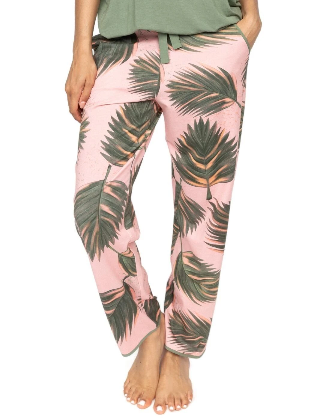 Cyberjammies Lea Leaf Print Jersey Pyjama Bottoms – Salmon Pink Mix