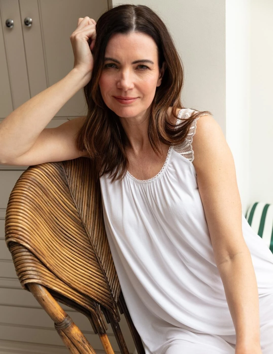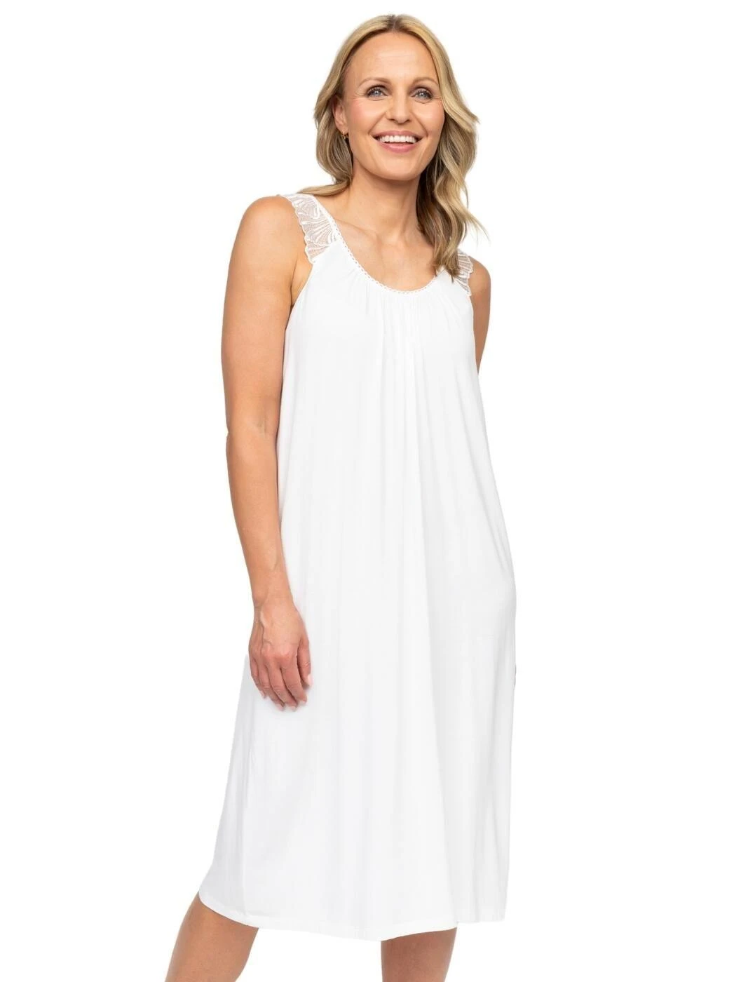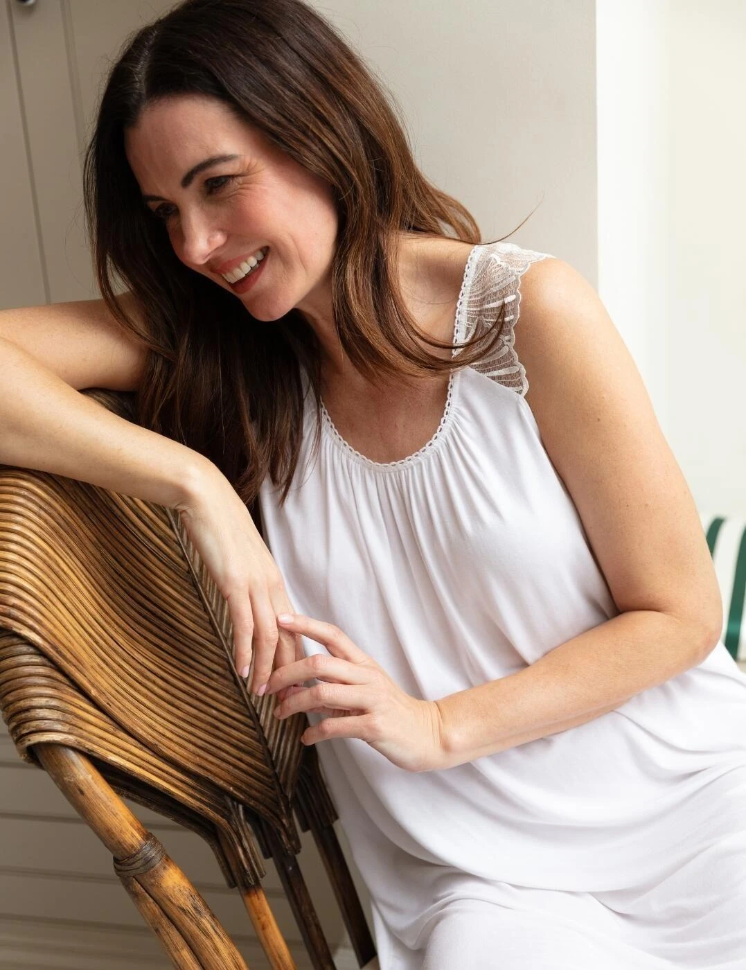 Redefine relaxation with the Christina jersey short nightdress by Cyberjammies Nora Rose. This knee-length nightdress is crafted from incomparably soft jersey fabric, designed to deliver dreamlike lounging all year round. It boasts a relaxed, elegant silhouette with no sleeves for freedom of movement, ensuring you can lounge stress-free whether it’s a leisurely morning or lazy evening. At the shoulders, beautiful scallop lace adds elegance, complementing the feminine rounded neckline and alluring low-scoop back. Plus, to cater to your eco-conscious values, Cyberjammies’ signature material is sustainably sourced and ethically made, so you can sleep soundly with peace of mind. Shop coordinating Christina nightwear to indulge in head-to-toe classic comfort.