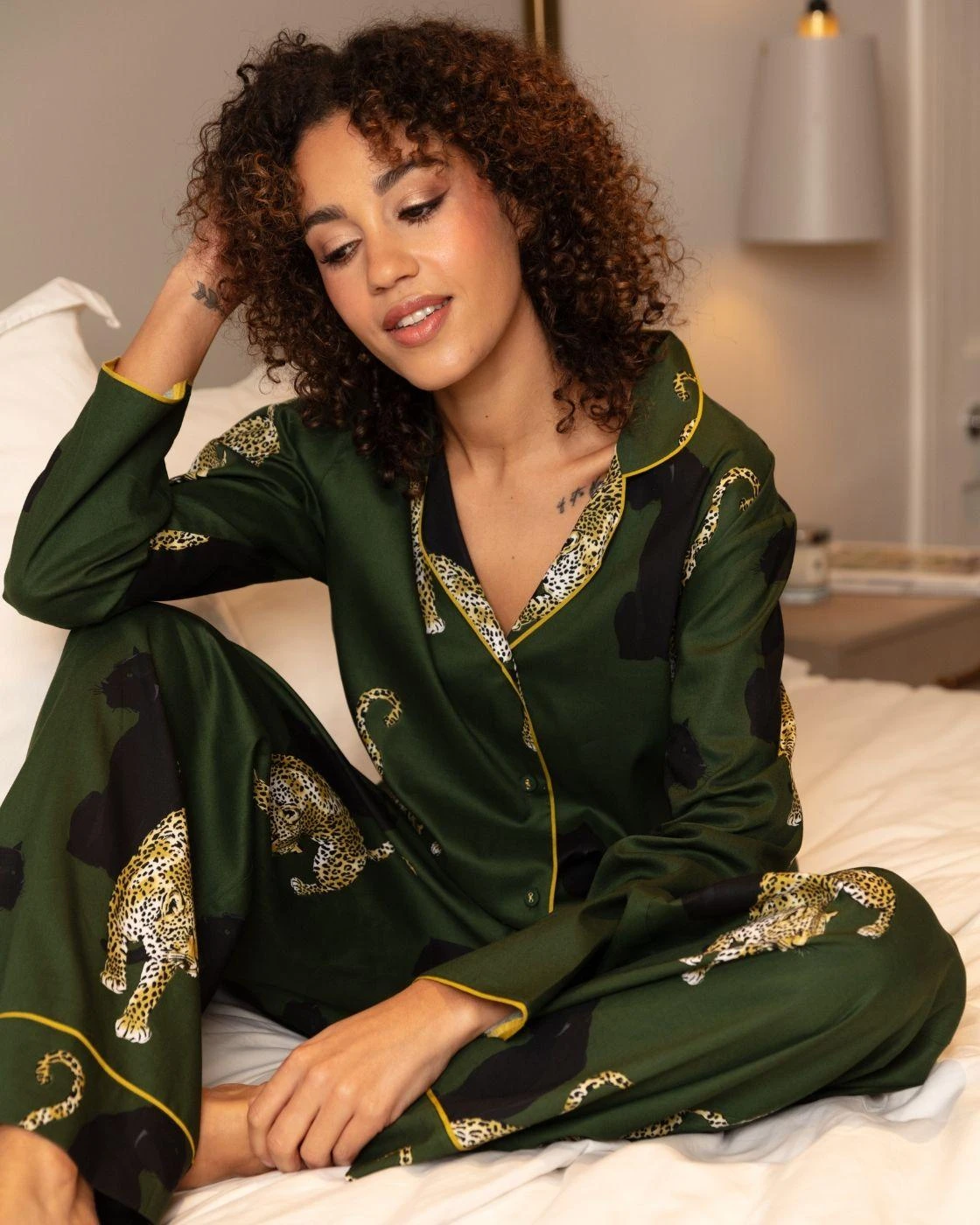 Cyberjammies Olive Leopard Print Wide Pyjama Bottoms – Olive Green Mix