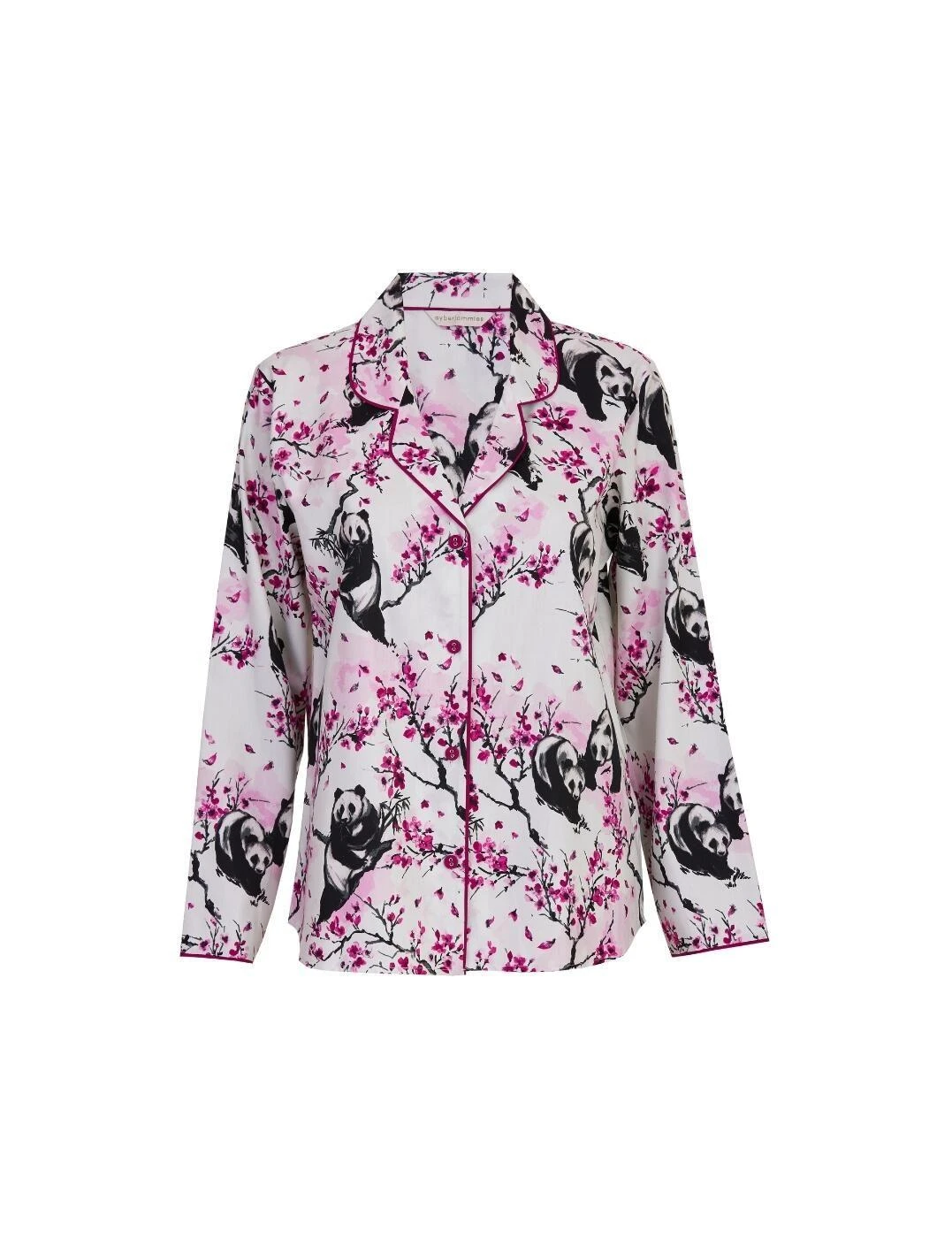 Slip into sumptuous slumber in this stunning pyjama top from the Penelope collection by Cyberjammies. Boasting a beautiful Eastern-inspired print of blossoms and pandas, this classic button-up pyjama top combines elegant features with ornate modern flair. A timeless revere collar and vibrant contrasting seam trim refine the top’s effortless style while Cyberjammies’ sustainably sourced lightweight fabric ensures a comfortable, cool sleep. Pair this gorgeous pyjama top with matching pyjama bottoms from the Penelope range for head-to-toe comfort.