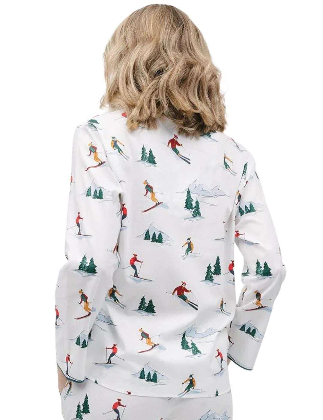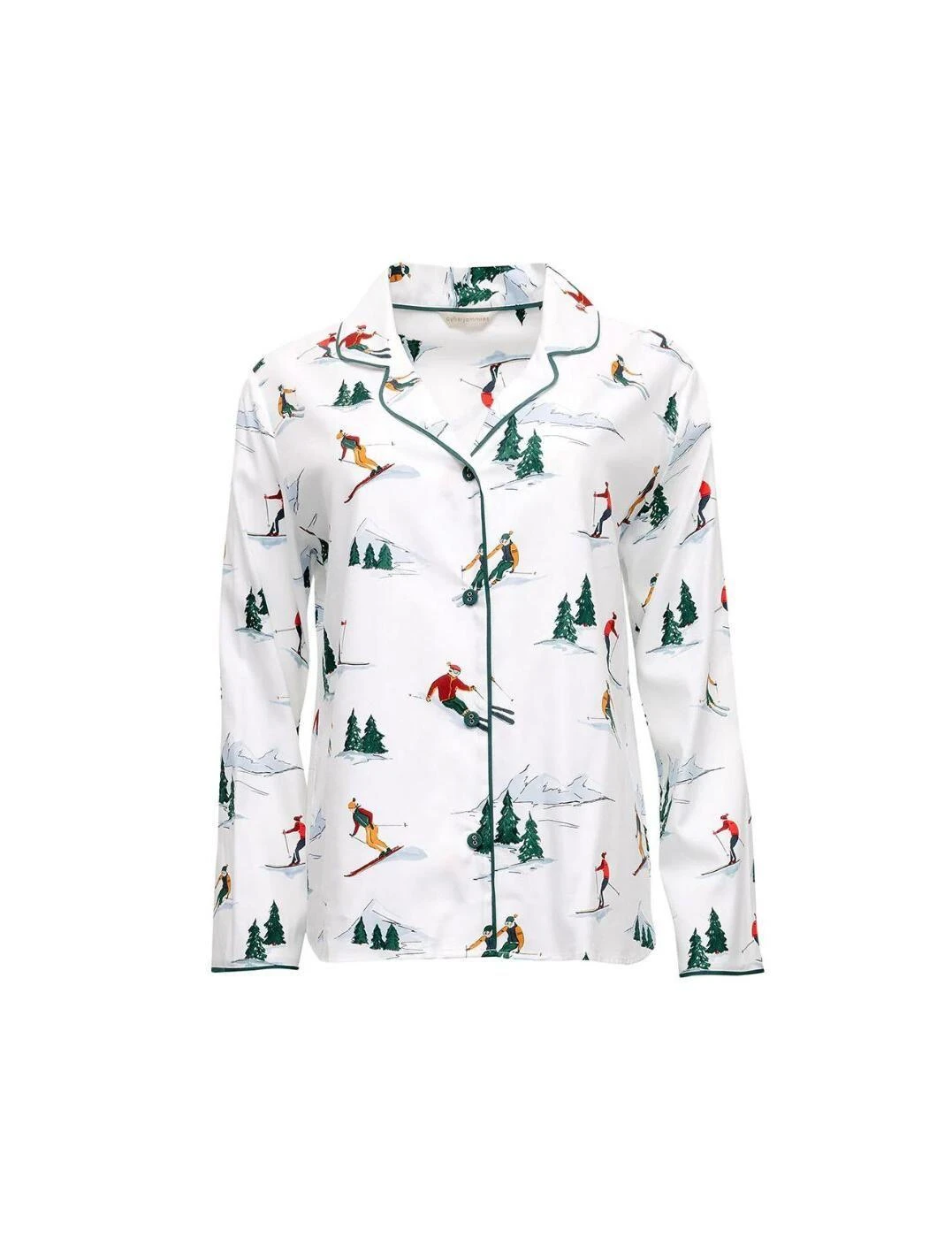 Welcome to cosy nights in with the Cyberjammies Whistler pyjama top. It comes in a fun ski print design that brings a modern vibe to an otherwise classic style. The fabric is designed to feel soft against your skin, ensuring you stay comfortable all night long. The long sleeves and revere collar give the Whistler a refined look and keep you feeling snug while you sleep . The button-down fastening also ensures you can style this pyjama top as per your mood. Check out the full range of matching coordinates so you can complete this set.