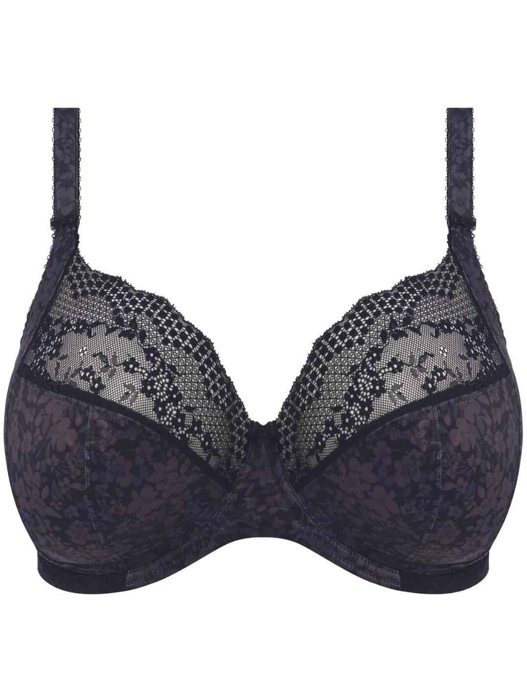 Introducing Elomi Lucie plunge bra, the perfect lingerie for any stylish woman. This beautiful bra is designed to ensure you look and feel fabulous, all day long. This piece features a plunging neckline to show off that beautiful silhouette, whilst 3-part cups provide shape and support for a truly flattering fit. The top part of the cups boasts delicate lace panels for a feminine look. You ll also love the smooth material, decorated with a beautiful floral print which adds a sophisticated touch. Side support panels offer additional security to ensure the perfect shape, and, for added comfort, the bra is non-padded and underwired. Adjustable shoulder straps and a hook and eye back closure allow you to get the perfect fit, every time. And, if you re looking for the complete look, matching briefs will complete your ensemble. Embrace your style with the Elomi Lucie plunge bra.