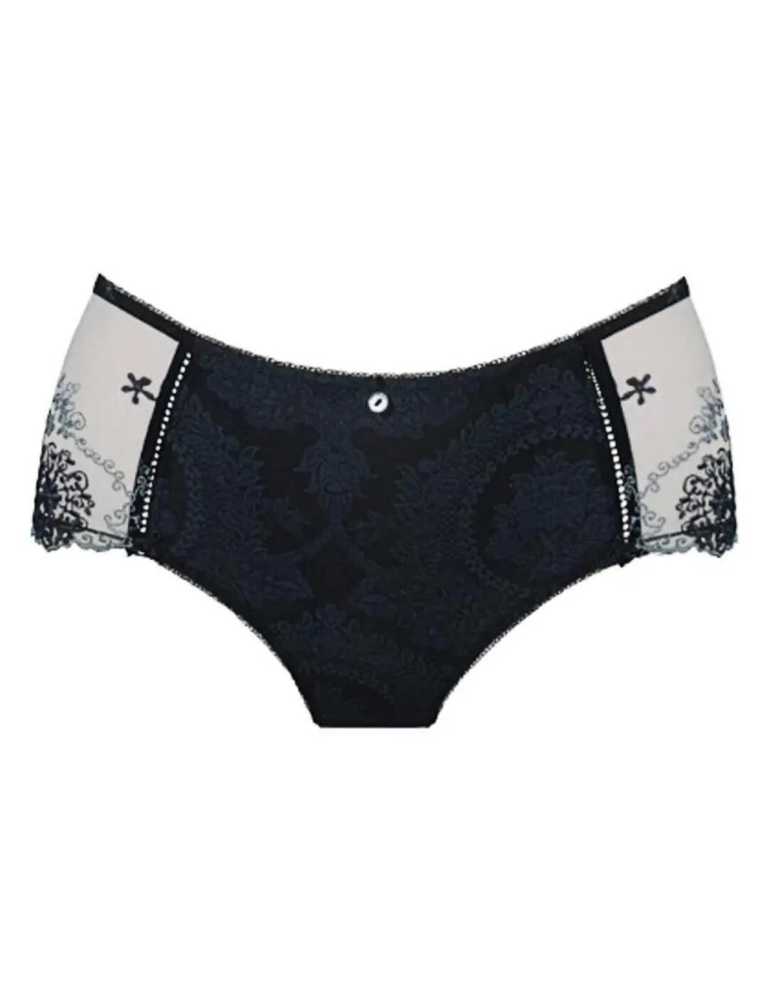 Look sophisticated in this spruced-up retro range by Empreinte. Featuring floral embroidery, mother of pearl trims and smooth satin fabrics, creating a style that enhances your figure perfectly. This gorgeous pair offers great coverage and is crafted from a sheer lace back, giving you a seductive look. Wear with matching coordinates from the Lilly Rose range.