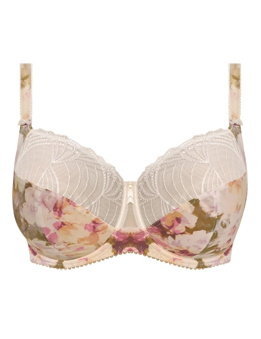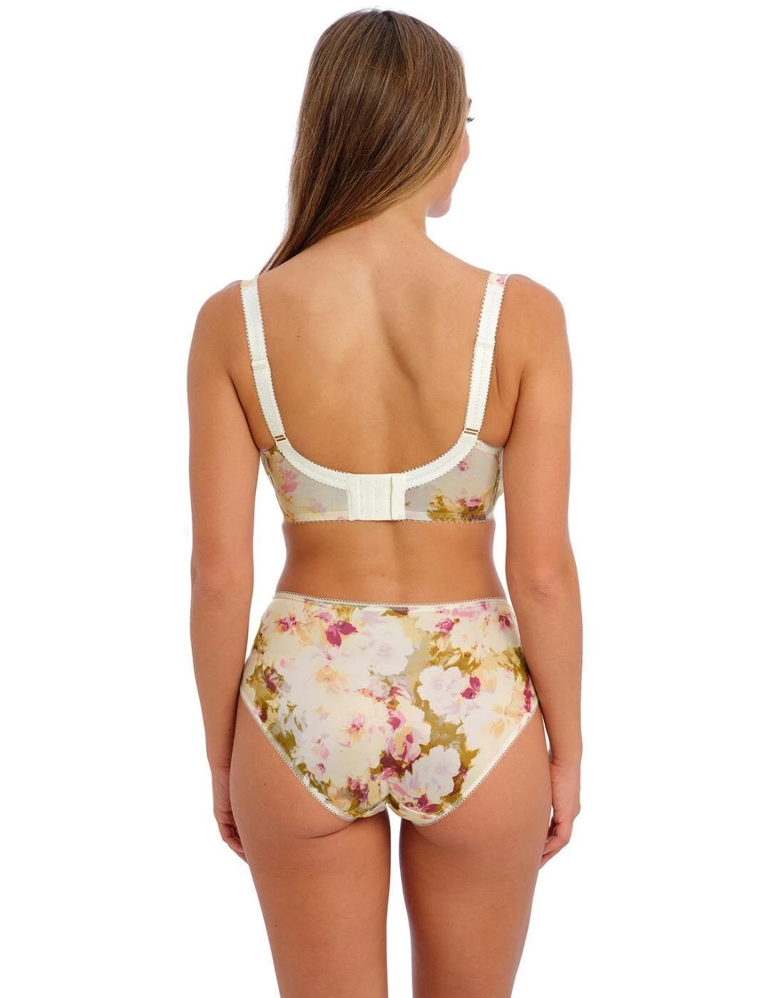 Add a touch of elegance, freshness, and femininity to your lingerie collection with this gorgeous side support bra from Fantasie’s stunning Adelle range! You’ll fall in love with the romantic design of this beautiful piece with the Swiss-designed geometric embroidery, sheer mesh upper cups, tied in with fabulous ribbon detailing and gold trim between the cups! The comfortable underwiring and powernet wings still allow for a secure fit while the three-piece cups create a flattering shape for your curves. Fully adjustable straps and hook and eye closure give you the customisable fit you deserve. Additionally, take a peek at the matching coordinate available to complete this floral set.