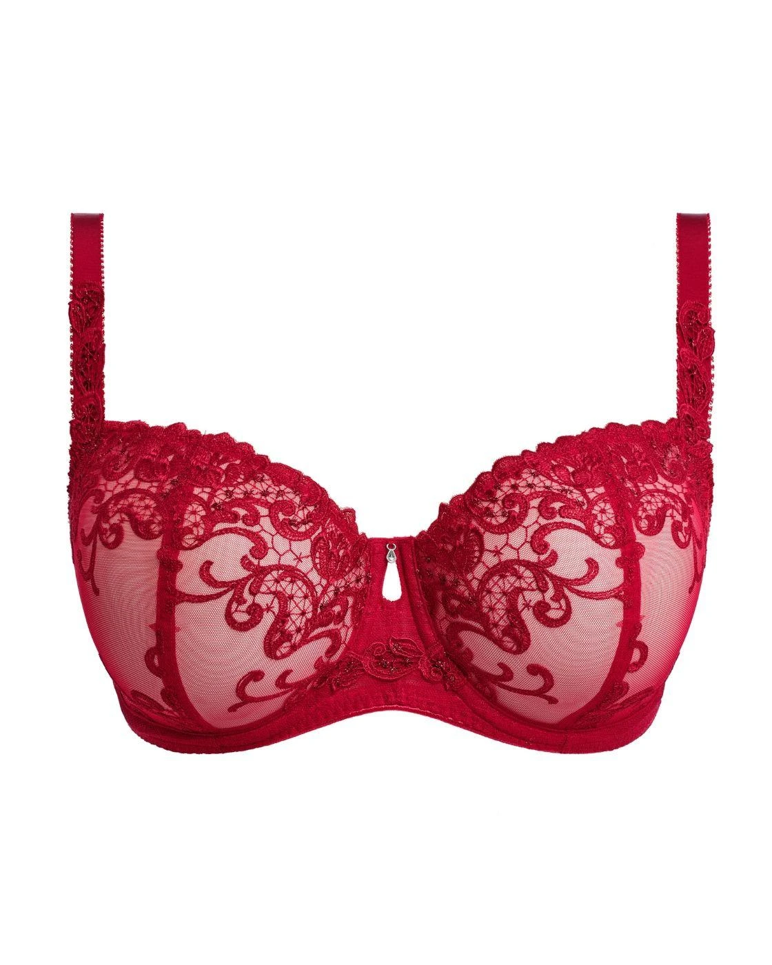 Add some sparkle to your wardrobe with the Fantasie Portia balcony bra this season. Featuring a gorgeous embroidered design, this bra is definitely going to upgrade your outfits. The wide wiring paired with the vertical seams ensures an uplifted look which is still super supportive. Further enhancing security is the inner side sling and powernet wings. Enjoy some added touches of glamour thanks to the decorated straps and metallic charm found at the centre front. Adjust the hook and eye closure and shoulder straps to you’re liking then you’re ready to go! To complete this look, try pairing it with one of the matching coordinates available now.