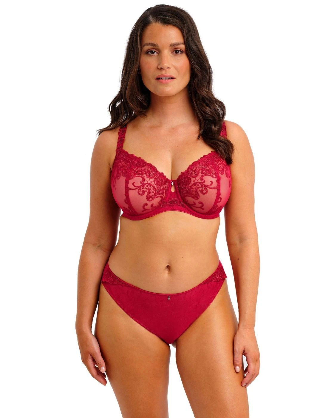 Discover new styles this season such the Fantasie Portia Brazilian brief for a elegant new look. Featuring a mid rise waist and smooth finish, this brief will stay snugly hidden under all outfits while still looking good. The stunning embroidery gives a refined and feminine look while the metallic charm exudes glamour. Enjoy a bit of cheeky, minimal rear coverage to ensure there’s no pesky VPLs ruining your outfit. To finish the Portia set, pair with one of the matching coordinates available now.