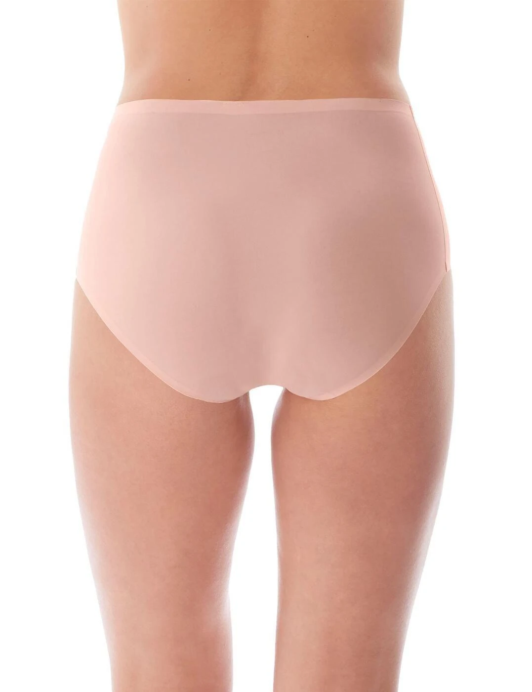 These invisible high-waisted briefs from the Smoothease series by Fantasie are amazingly smooth as the range suggests, the entire brief sits so snugly against your skin, massively flattering your figure. The invisibility comes from this piece being completely seamless, leaving them to be unnoticeable under clothing, even super-tight dresses! They are the ideal everyday wear that everyone needs in their lives. Complete rear coverage with a high-waisted design is perfect for giving a sense of security and protection throughout the day.