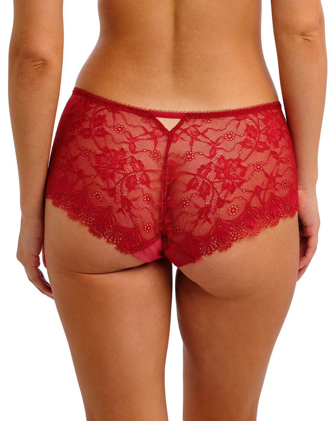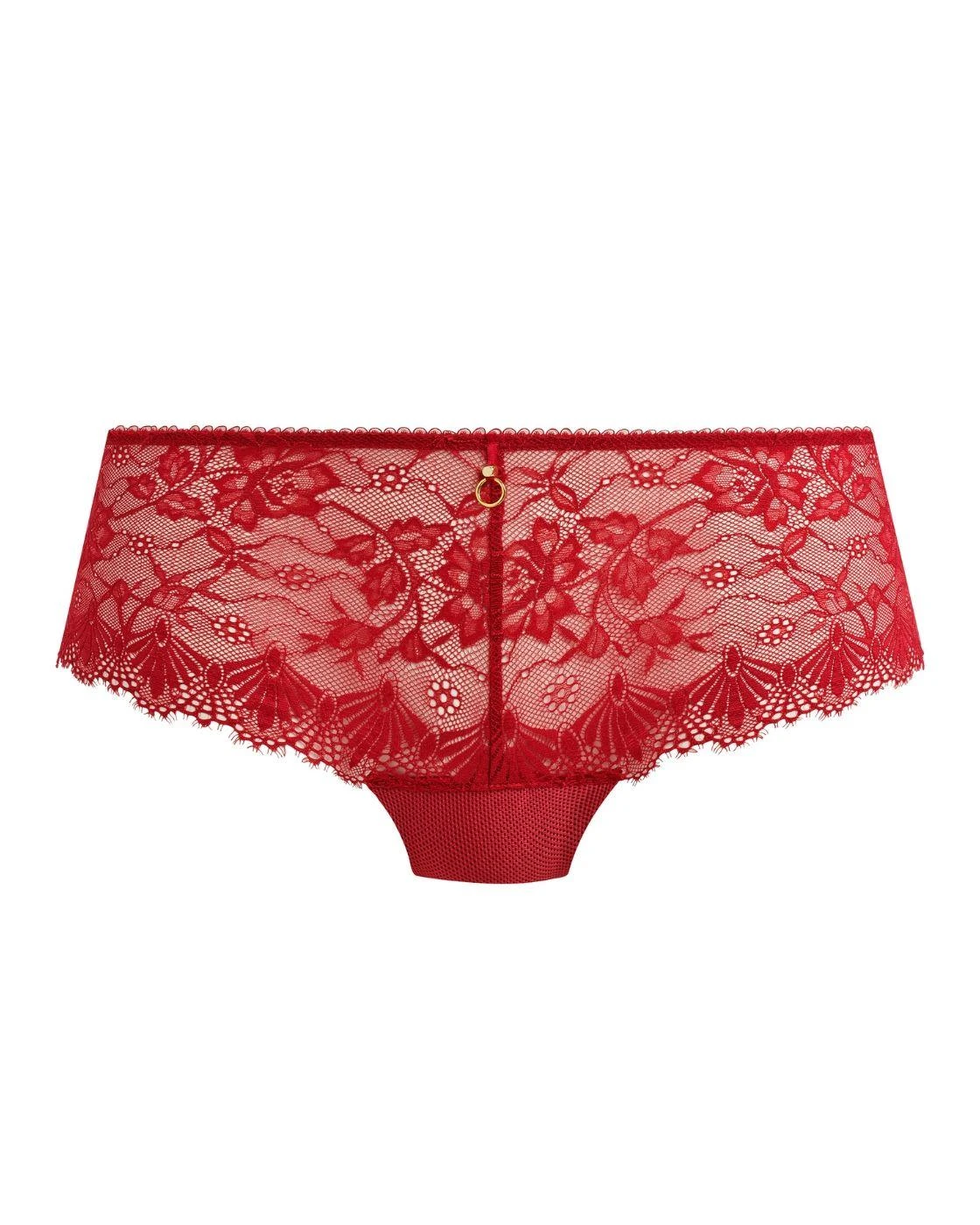 Indulge in playful sophistication with the Fascinate short by Freya. Crafted from beautiful all-over eyelash lace, these must-have short briefs combine timeless shape with feminine design to be the perfect addition to any lingerie wardrobe. The mid-rise waist flatters your curves while moderate sheer coverage of the rear balances modesty and allure, with scalloped edges for a clean-cut, smooth finish. Decorative mesh detailing adorns the lacey fabric to promise an ultra-feminine feel, complemented by the teasing cut-out detail at the back and chic ring and ribbon embellishments at the front. Wear with matching lingerie from the Fascinate collection for a sophisticated ensemble you’ll reach for time and time again.