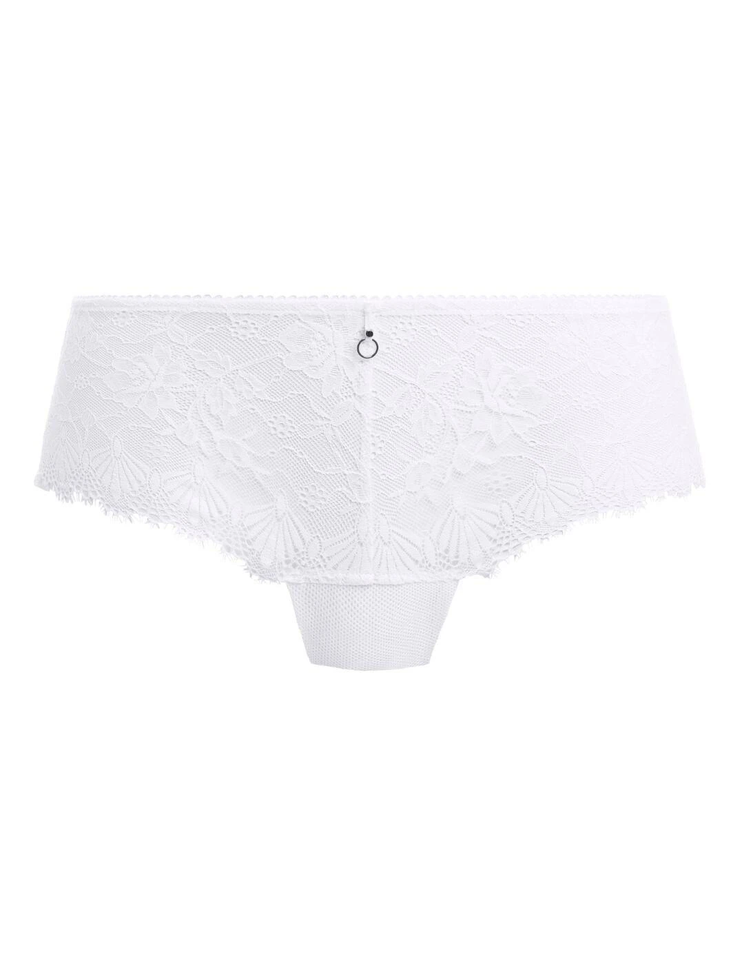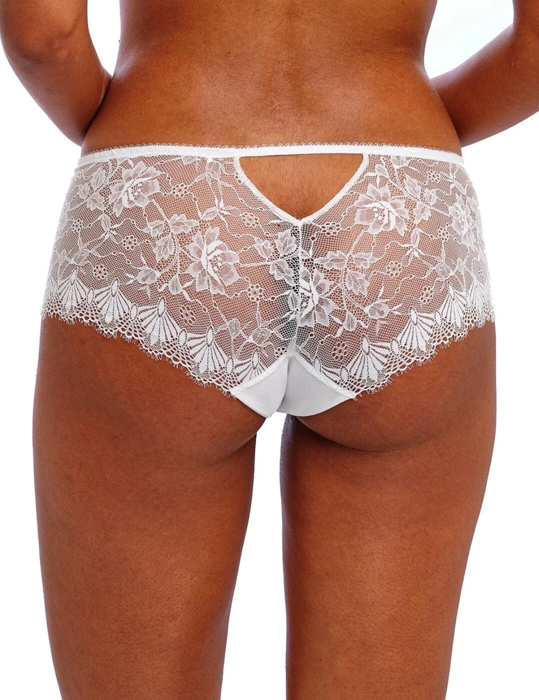 Introduce unparalleled elegance to your lingerie with the Fascinate short brief by Freya. Featuring the classic shape of a low-rise waist and good yet sheer rear coverage, these gorgeous briefs offer all-day comfort without sacrificing allure. Beautiful all-over floral lace creates a romantic, lightweight feel, complemented by delicate eyelash edges that flatter your silhouette. At the rear, a seductive cut-out detail adds a teasing touch and scalloped edges promise a smooth finish, eliminating VPLs under even your tightest clothes. Finished with a chic metallic ring and ribbon detail, these briefs can be worn with matching Fascinate lingerie for head-to-toe elegance.