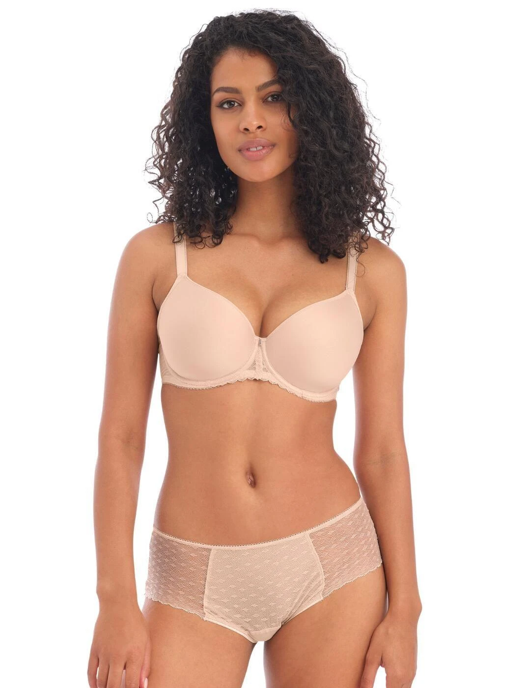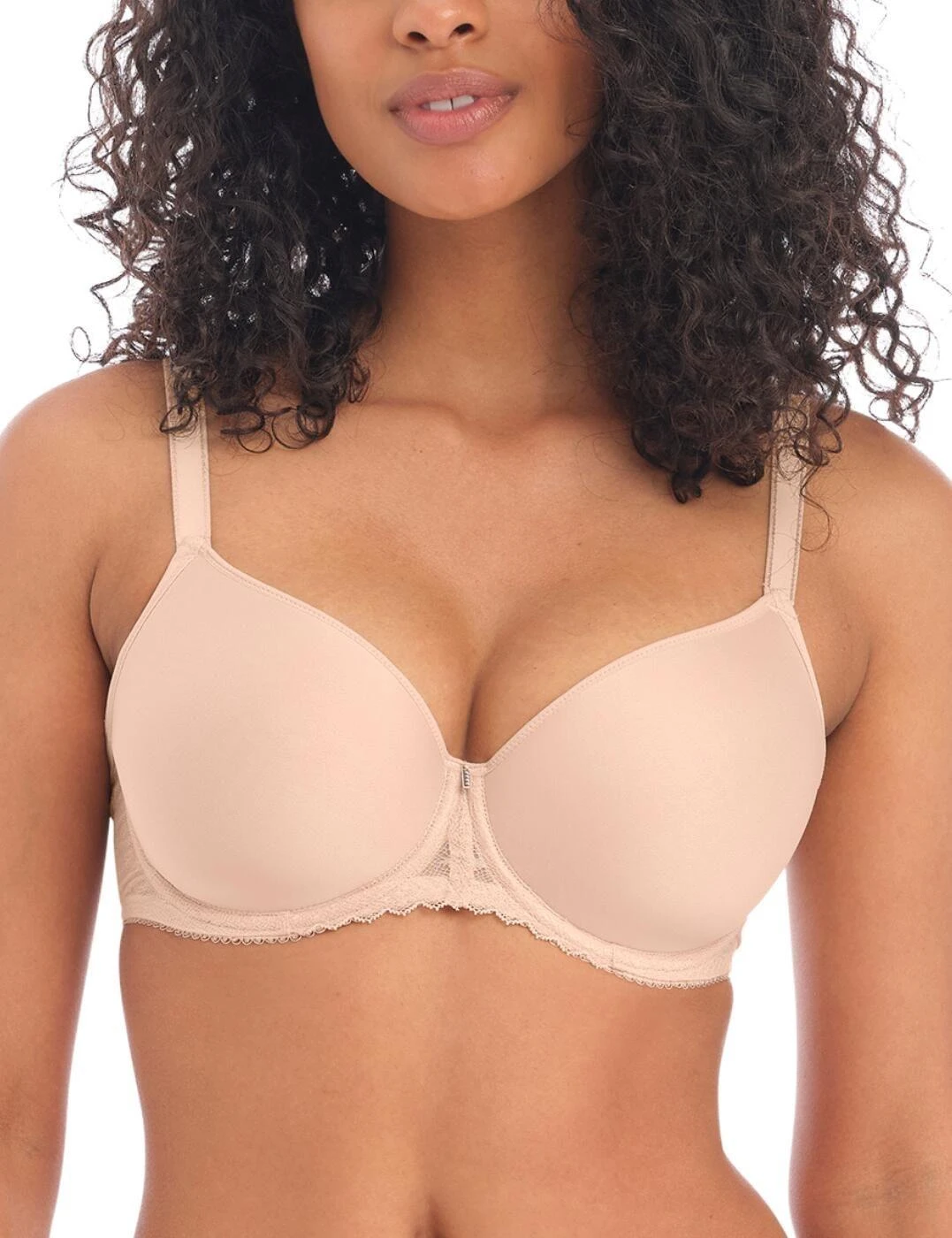 Freya Signature brings elevated essentials that your lingerie drawer craves. This moulded spacer bra falls to a sweetheart neckline that beautifully frames and highlights your bust with the underwiring adding lift and support. This piece features seamless moulded cups for a rounded shape to the bust whilst still being discrete when worn underneath outfits. This moulded spacer bra boasts fixed fully adjustable shoulder straps and a classic hook and eye closure that enables you to tailor the fit to your own preference.
