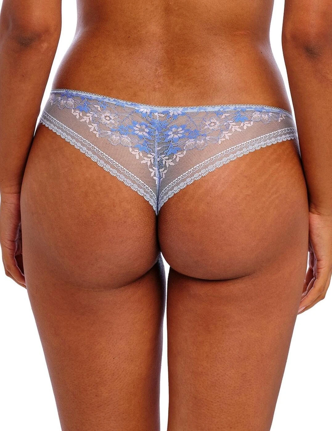 Flatter your feminine side with the captivating Sydnie Brazilian brief by Freya. Designed to blend the classic seductive Brazilian styling with a dreamy floral twist, these must-have briefs offer a mid-rise waist with a flattering low centre to elongate your curves. At the back, beautiful stretch lace offers sheer minimal coverage, accented by enchanting floral motifs and galloon lace edging to create a smooth silhouette with no VPLs. A mesh lower front with increased opacity ensures modesty for comfortable everyday wear, while the teasing cut-out and playful bow just above maintain the light and alluring look of the briefs. Wear with matching Sydnie lingerie for head-to-toe elegance.