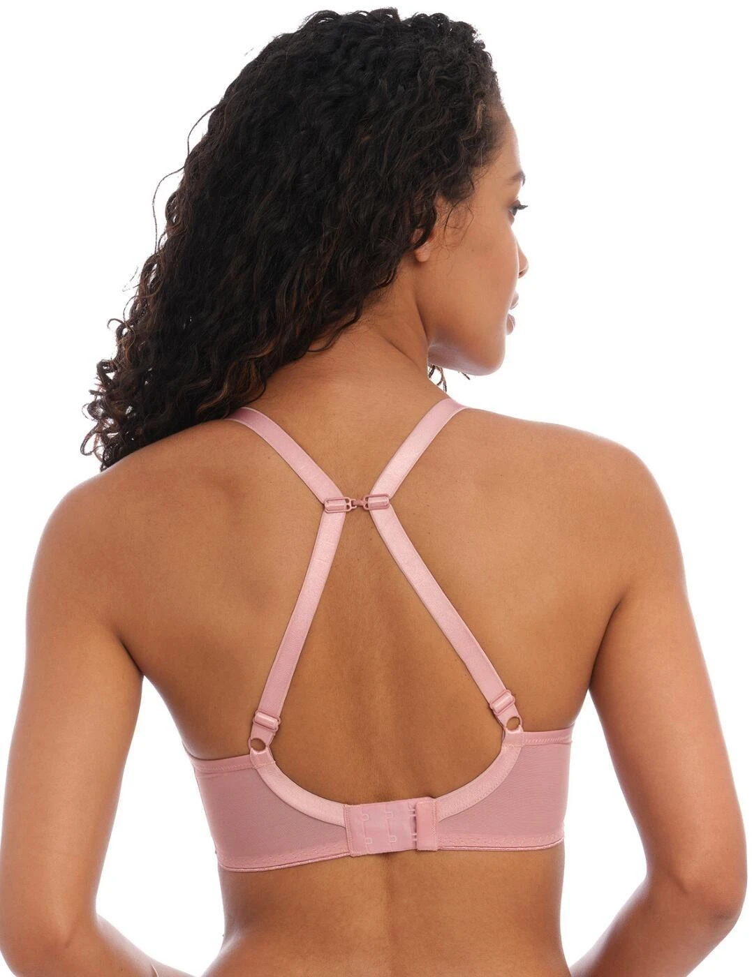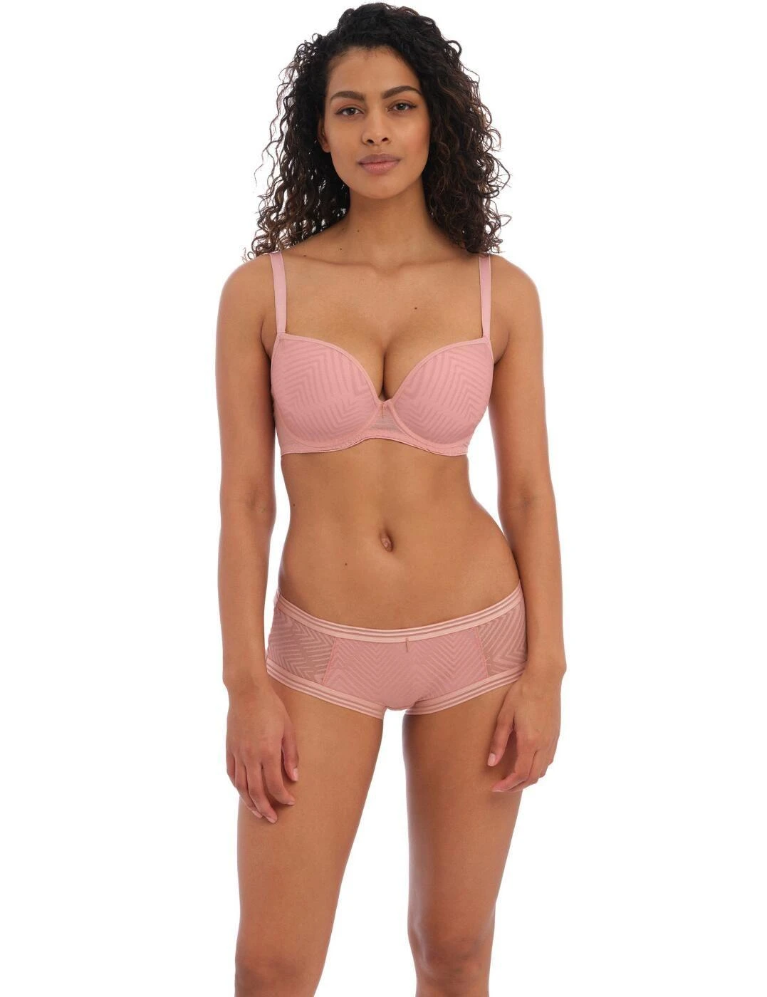 Add a touch of sophistication to your everyday lingerie collection with the Tailored lingerie collection by Freya. The contemporary geometric mesh lace overlay adds a trendy finish to the classic minimal design. The plunge neckline is perfect under low-cut tops and the moulded cups create a natural round shape. Underwiring offers support and the optional J-hook creates a racerback style for extra support and an invisible finish. Complete the look with stylish coordinating lingerie from the Tailored collection by Freya.