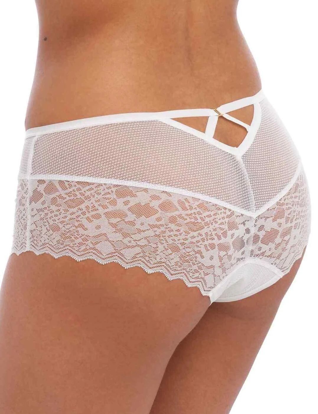 If you’re looking for that new jaw-dropping piece that is going to tempt your partner like no other, look no further than the Temptress range by Freya. It brings this short brief that has flirty detailing with mesh fabric on the top half and delicate lace on the bottom half that softly scallops around the edges. The brief has a seductive cut-out at the rear underneath the waistband with a luxurious gold charm in the centre. It has a low-rise waist and provides cheeky rear, showcasing your incredible figure. Complete the look with the other matching items from the Temptress range that are also available.