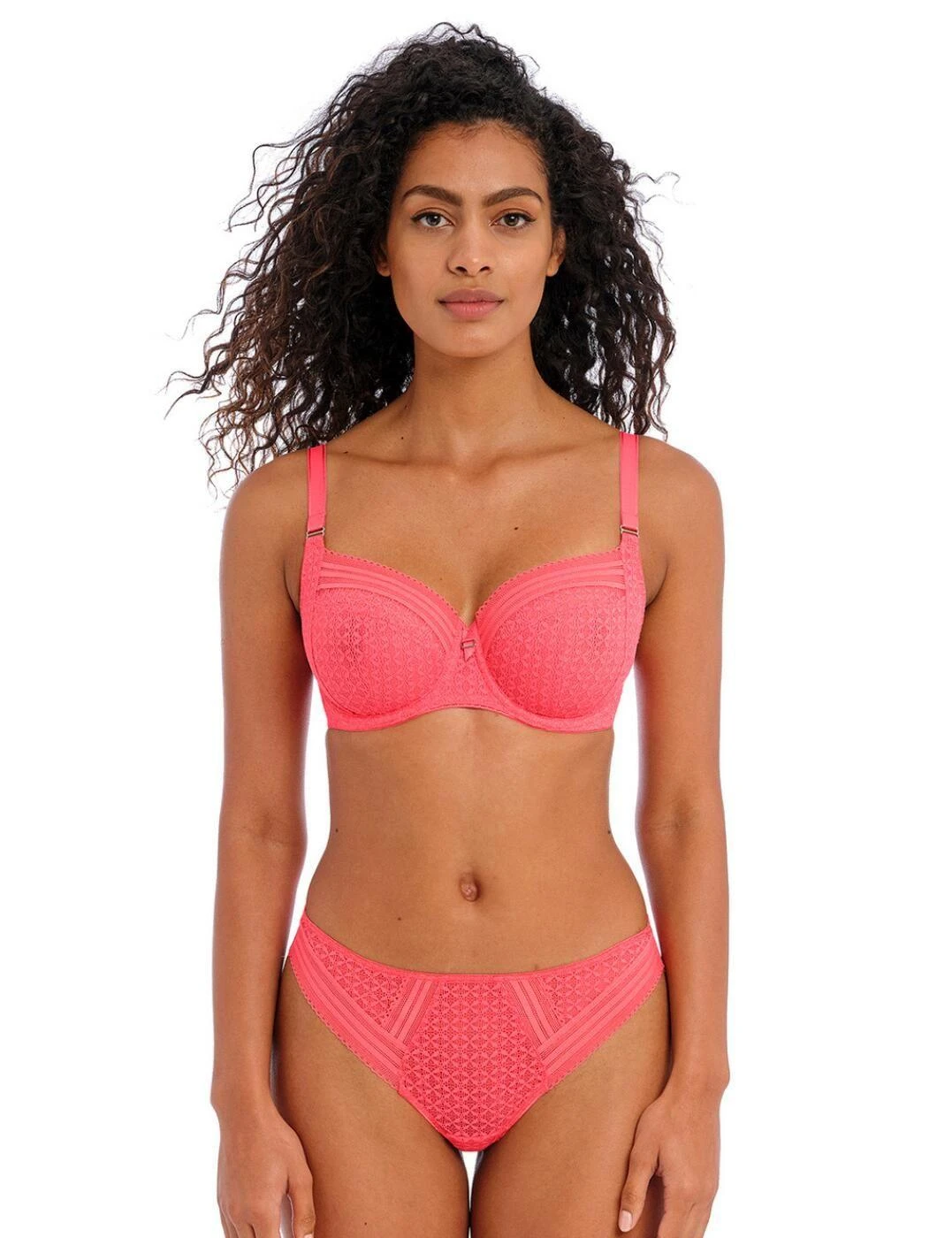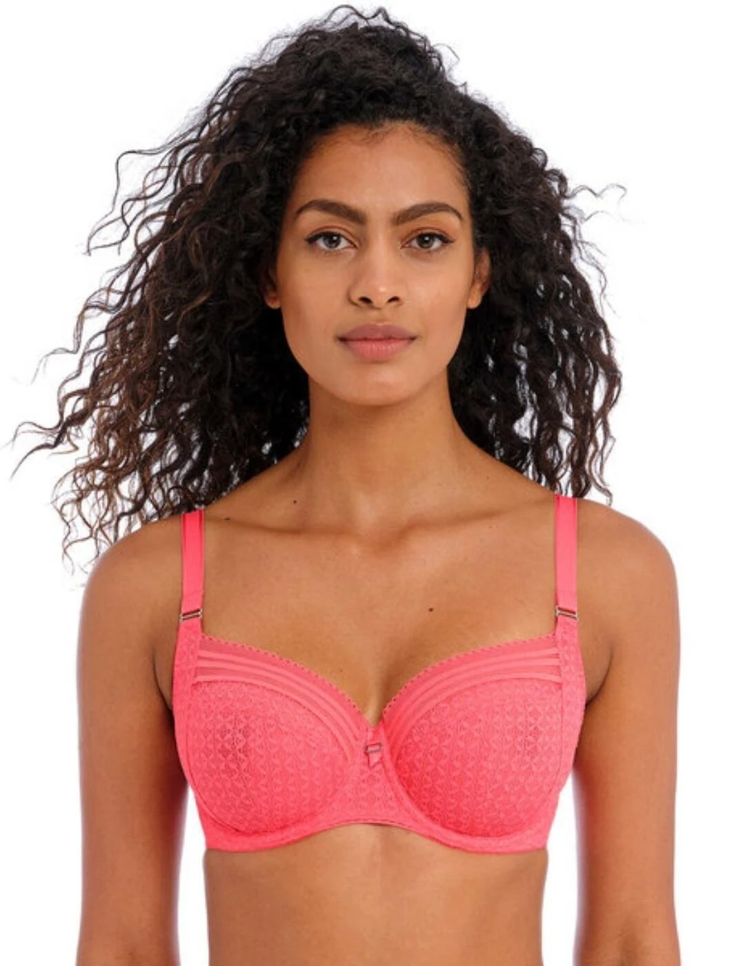 Freya’s Viva side support bra is a must-have for your underwear drawer. The four-piece cups provide uplift without padding, giving a smooth, natural look, and there is an underwire for support. Decorative elasticated lace on the upper cup adds a unique style to this bra, with the scalloped trim on the neckline adding a feminine touch. The straps are adjustable to ensure you get the perfect fit and the rear hook and eye fastening will stay secure all day long.
