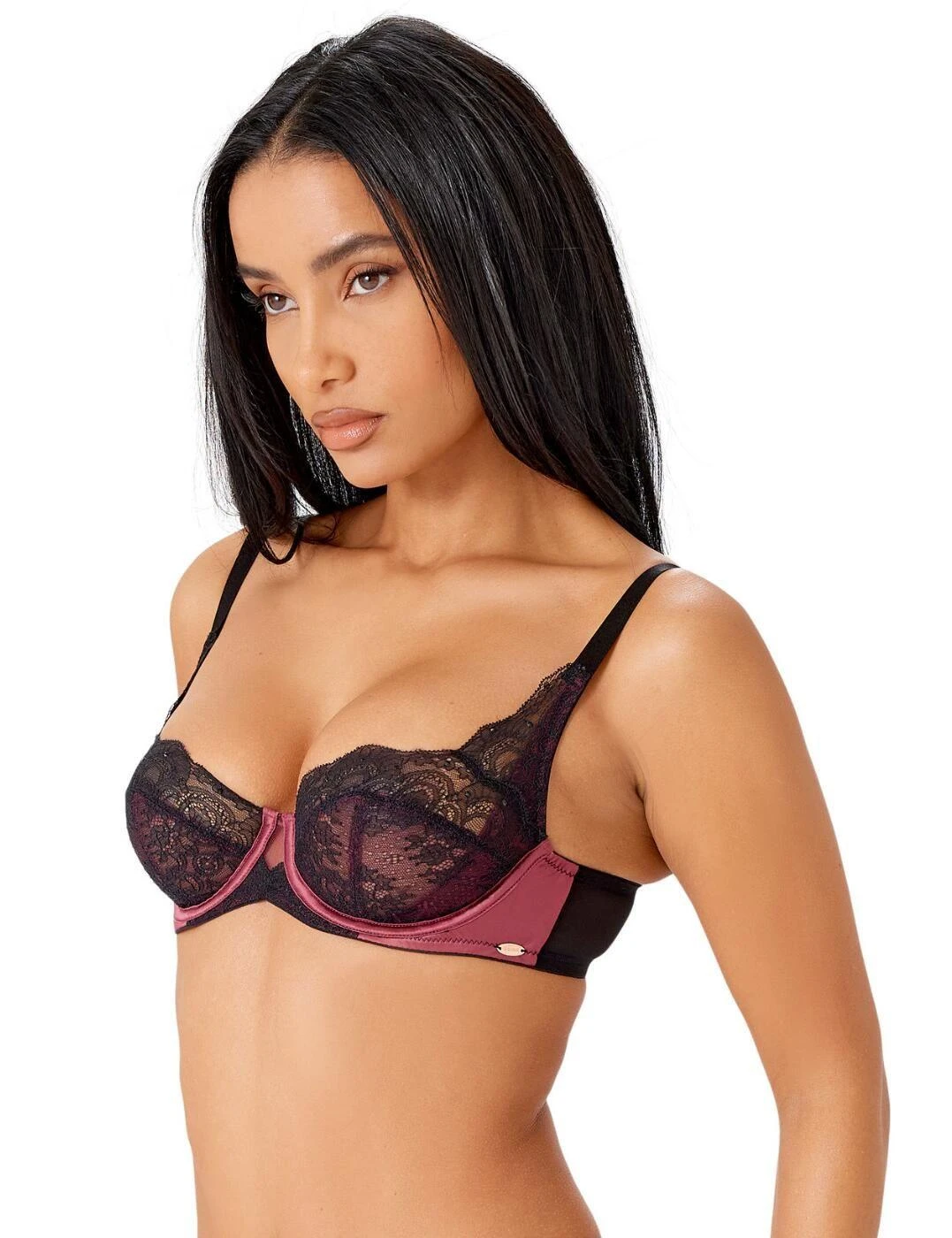Embrace a sophisticated look with a glamorous edge in this gorgeous balcony bra from the VIP Confession collection by Gossard! The balcony neckline is supremely flattering, and features an inner sling for extra support and side profile projection to give you a beautiful silhouette. Opulent, stretch lace, contrasting mesh, and luxurious satin detailing combines in this exquisite bra to create an irresistible aesthetic! With underwiring, adjustable straps, and a hook and eye closure, your security is optimised and you can find your best fit with ease. Pair with matching briefs from the VIP Confession range for a feminine, alluring ensemble!