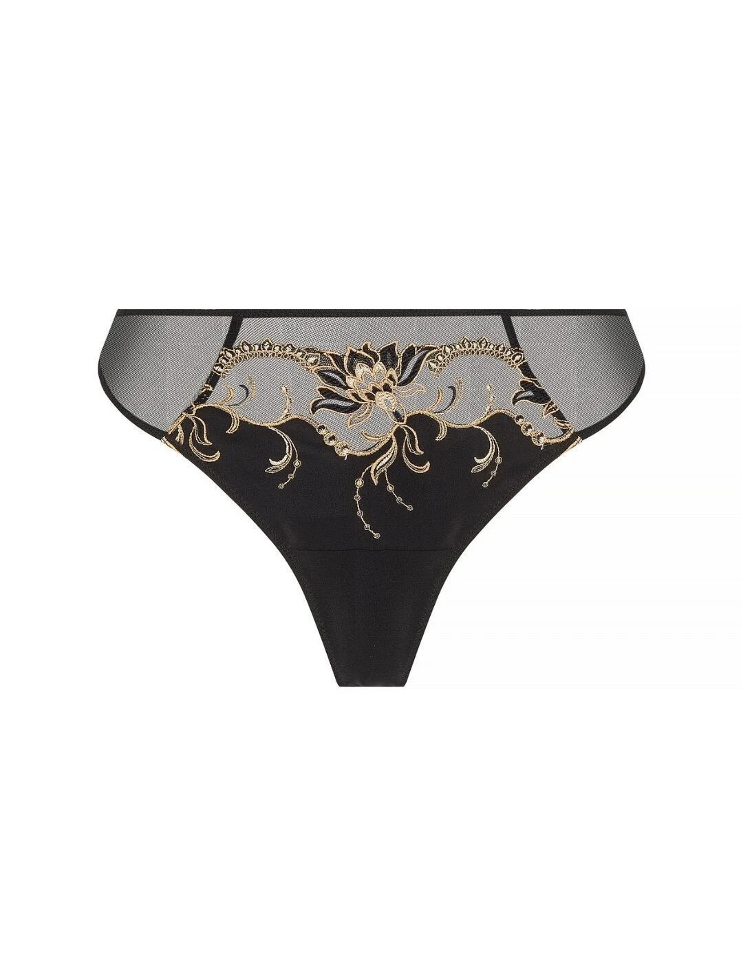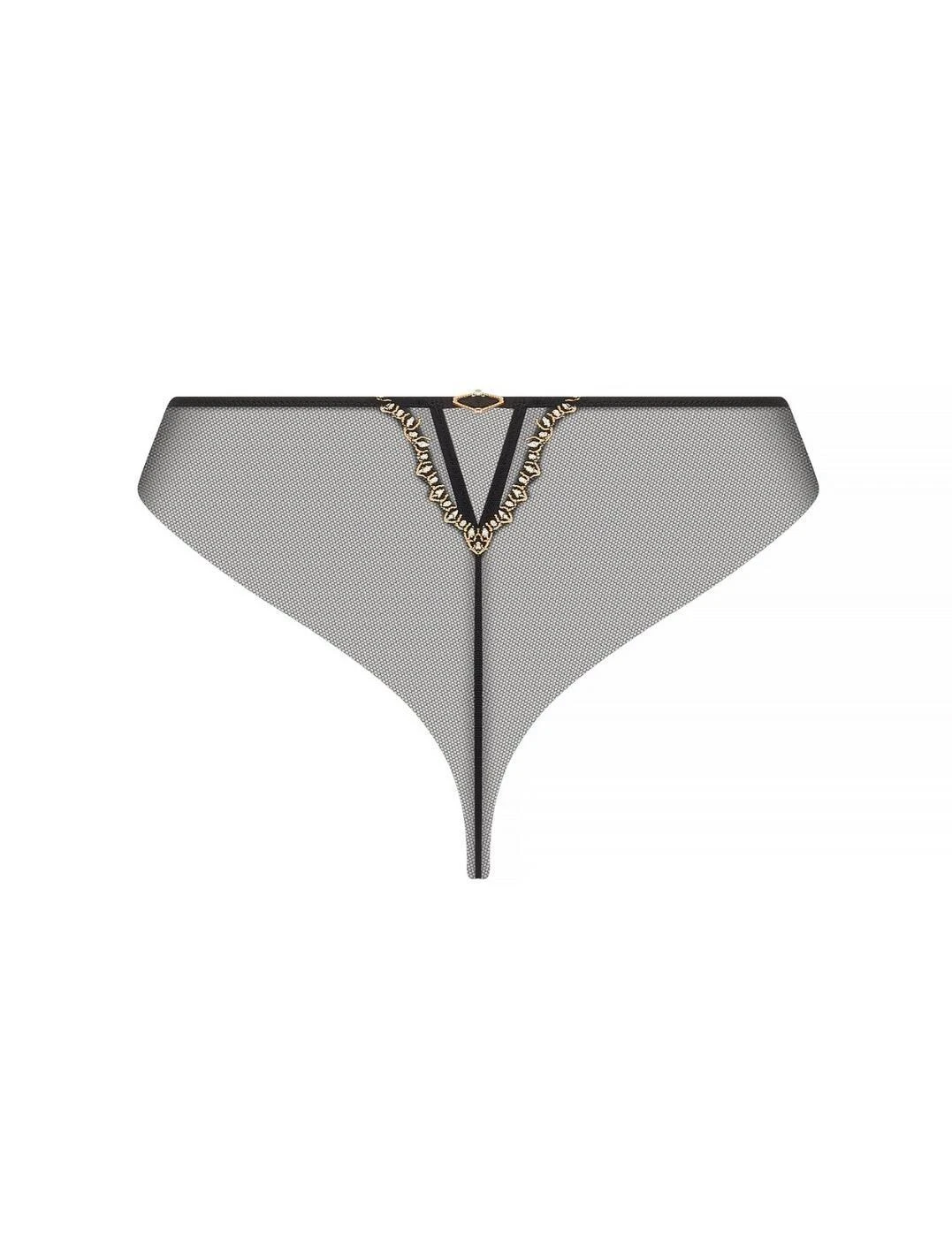 Indulge in a touch of luxury with the Lise Charmel Eblouissante Icone thong. Crafted from the finest satin silk, the front of this thong offers a sensually smooth and soft touch against your skin. But that’s not all, the front is also adorned with delicate embroidered tulle, adding a touch of femininity and sophistication to the design. The back of the thong features a cleverly folded tulle, ensuring invisibility under even the most form-fitting clothing. But what truly sets this thong apart is the stunning rhinestone jewel, delicately placed on the front and tied together with a silk satin ribbon. With minimal rear coverage, this thong is designed to showcase your curves and leave you feeling empowered and confident. And for the ultimate luxurious experience, pair it with the matching coordinates for a complete and captivating look.