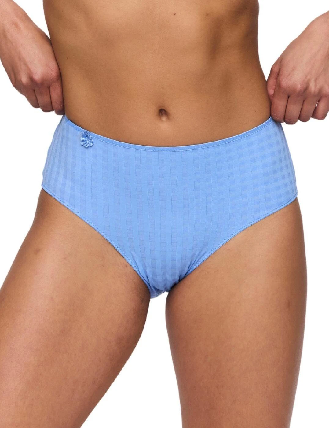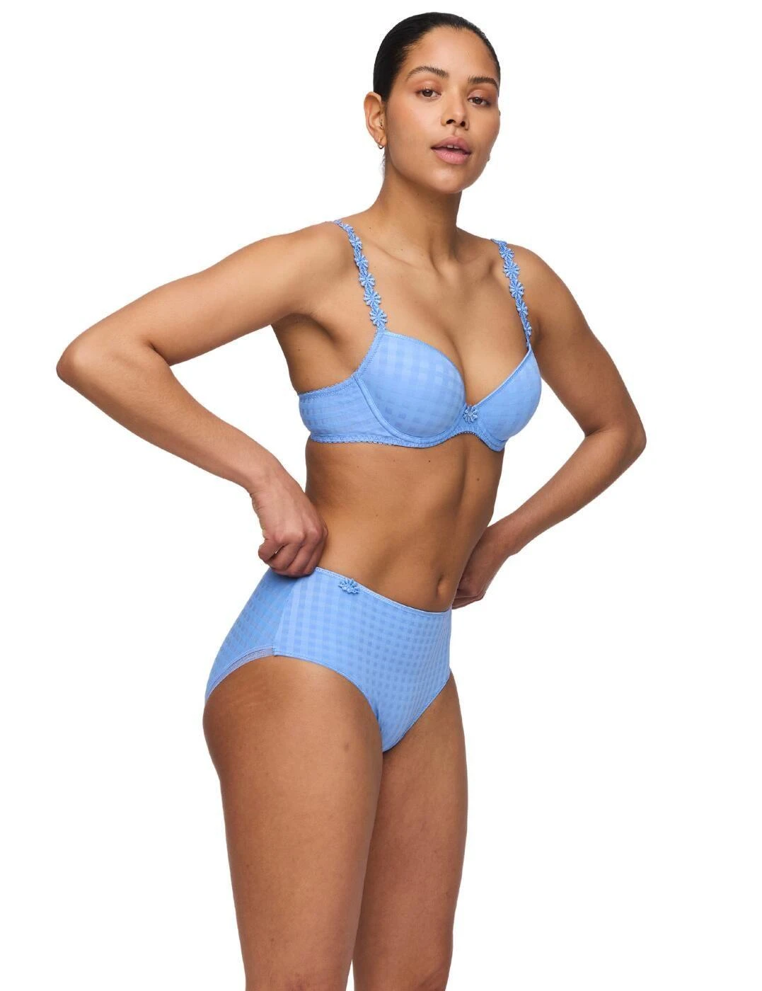 Indulge in a little luxury with the Marie Jo Avero full briefs this season. Crafted with the highest quality materials, these full briefs provide the perfect fit and feel, making them a must-have for every woman’s wardrobe. The high-rise waistband not only offers superior coverage and support but also adds a touch of vintage charm to the design. But what truly sets these briefs apart is the playful check design that adds a fun and flirty twist. To top it off, there is a playful flower on the front side, adding a touch of femininity to the overall look. But don’t let the delicate details fool you, these briefs offer full rear coverage for ultimate comfort and confidence. You can now complete the look by pairing these briefs with the Avero matching coordinates today, creating a seamless and gorgeous set.