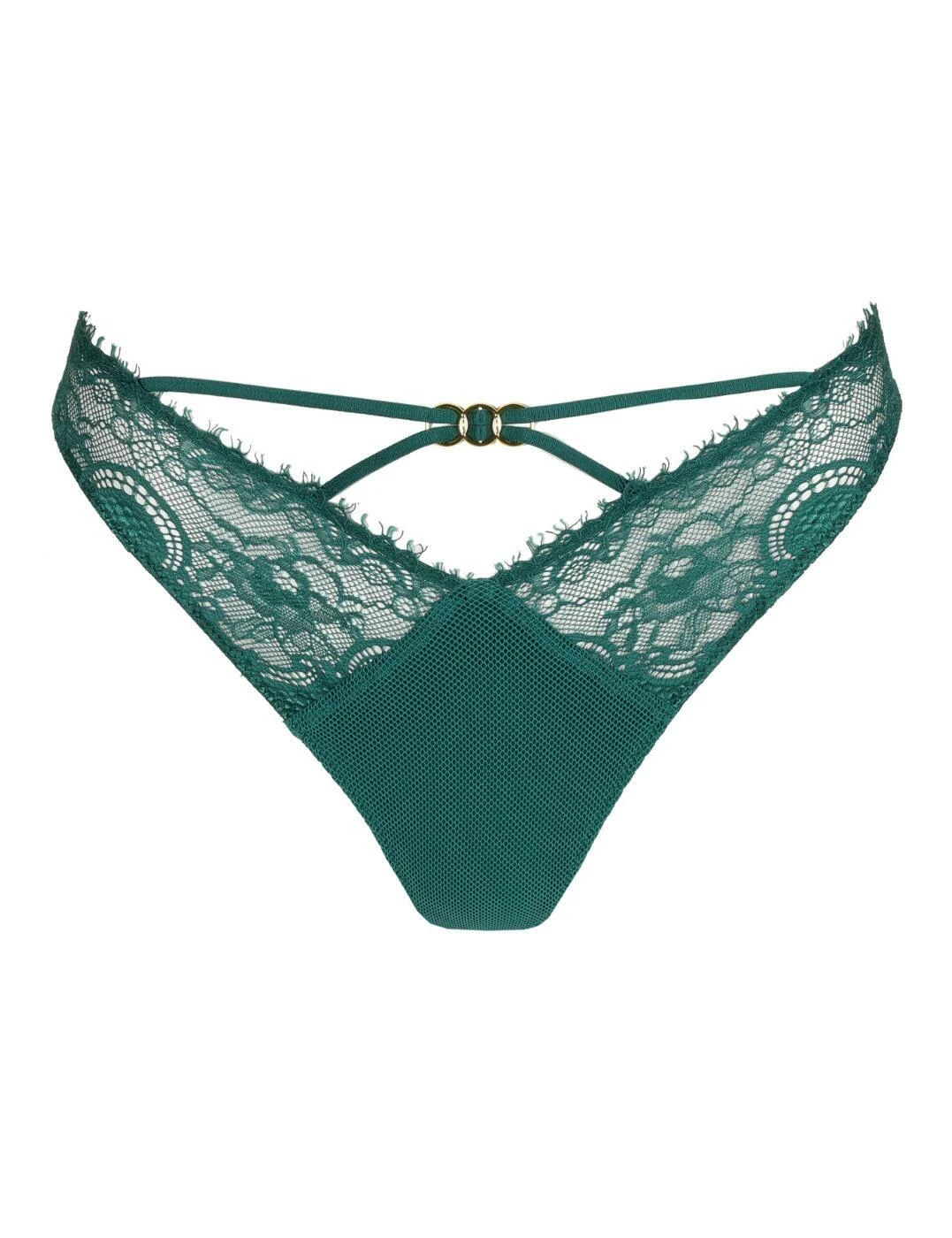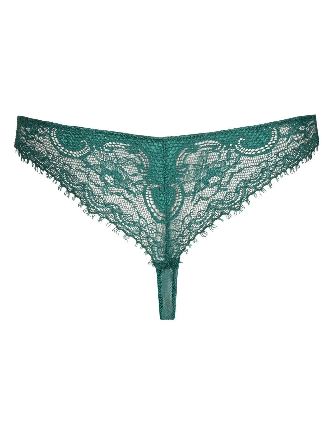 Feel bold and beautiful in this luxurious thong from the Junoo collection by Marie Jo! Sophisticated yet undeniably provocative, this unmissable thong features opulent lace detailing for a truly refined look. What’s more, the low-rise waist and minimal rear coverage combines with unique strapping details and a V-cut waistline across the front to frame and enhance your gorgeous curves! To complete your look, pair it with a matching bra from the Junoo range to further the seductive style of this must-have thong!