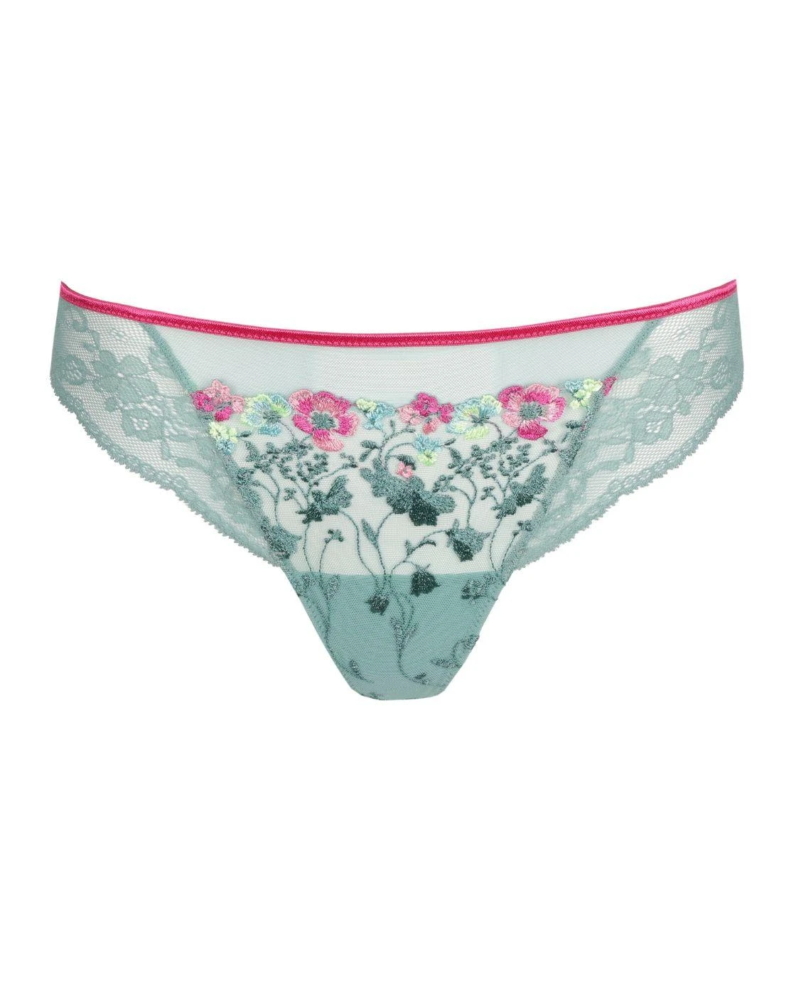 This luxury thong from Marie Jo’s Lizelot collection is a striking and seductive piece to add to your lingerie drawer. The intricate floral embroidery and sheer lace at the sides and rear create a romantic and alluring feel while the minimal rear coverage design flatters your curves, perfect for wearing under clothes or saving for special moments. It features a low-rise waist which hugs your hips for a gentle, comfortable fit for lasting comfort. The subtle sheer centre exposes the skin underneath for a tantalising style. Matching coordinates are available if you fancy taking this up a notch!