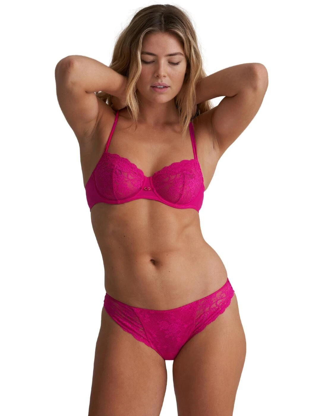 Envelop yourself in flirty, feminine style with this luxurious balcony bra from the Melipha collection by Marie Jo! Featuring an ever-flattering balcony neckline and sensual, lace covered cups, this beautiful bra effortlessly ensures a fit that celebrates your curves while offering a timeless, opulent aesthetic. Underwiring, adjustable straps, non-padded cups, and a hook and eye closure combine to give you unparalleled comfort, security and an adaptable fit! Complete this gorgeous look with matching briefs from the unmissable Melipha range!