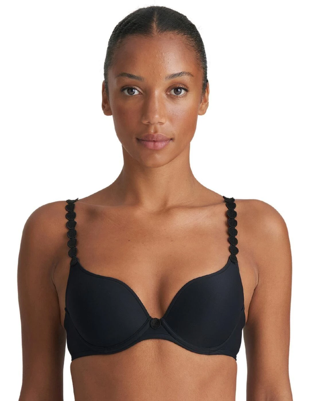 Look feminine and sensual in this Tom padded heart shape bra by Marie Jo. Featuring padded and underwired cups for excellent boost and uplift. The heart shape design creates a gorgeous cleavage allowing for a more exposed look. Crafted from smooth and luxurious fabric that feels comfortable against your skin and works well under tight clothing. The fully adjustable straps can be individually fitted and converted into a halterneck. Finished off with delicate and fun embroidered detailing on the straps and centre panel. Pair with matching coordinates for a comfy and chic look!