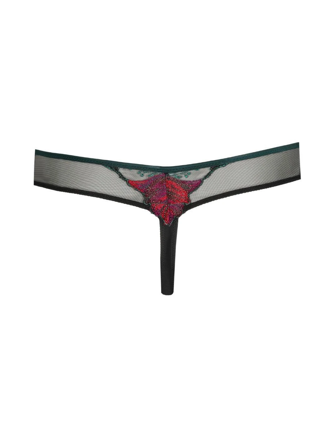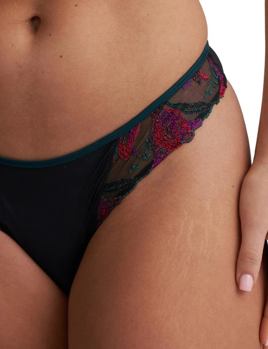 Radiate confidence and provocative, sensual style with this luxurious thong from the Yoly collection by Marie Jo! Richly adorned with intricate embroidery on the sides and rear, this thong exudes sophistication and glamour effortlessly. In terms of design; the classic, minimal rear coverage combines with a low-rise waist and high-cut legs to fabulously flatter and celebrate your curves for an irresistible look! Pair with matching items from the Yoly range for a truly ravishing ensemble!