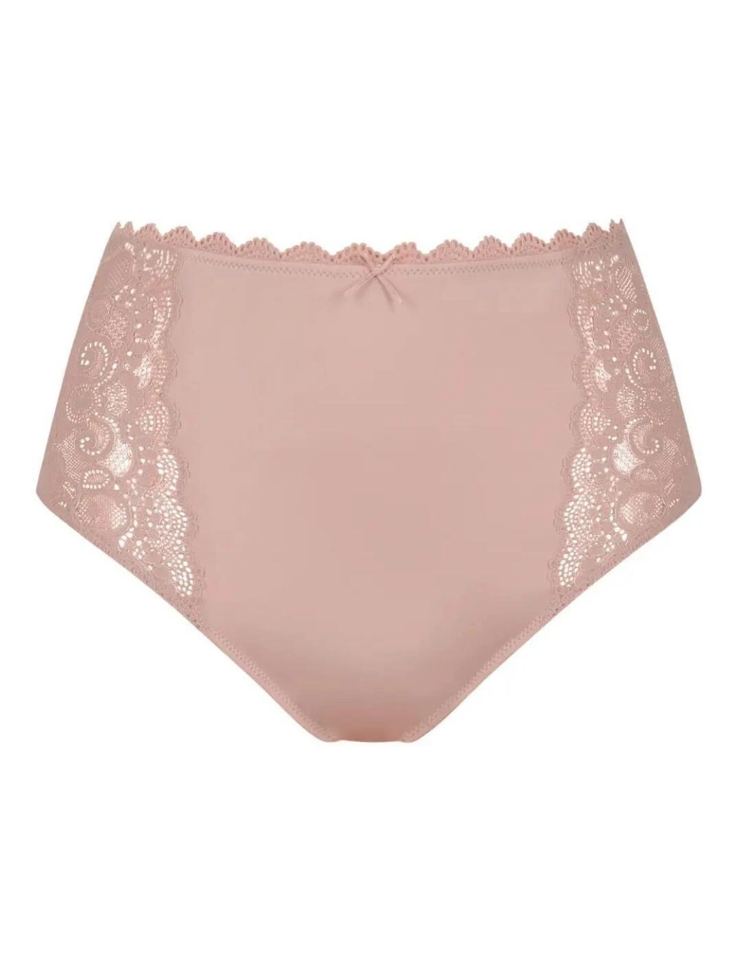 If you love high waisted briefs then Mey has got you covered. This brief is a part of the Amorous which introduces feminine lingerie with graphic lace detailing. The brief has a plain opaque design with semi-sheer lace sides and a ruffled lace waistband. It is high-waisted and provides full rear coverage which helps highlight your curves to show off your incredible silhouette. Finished off with a mini centre bow.