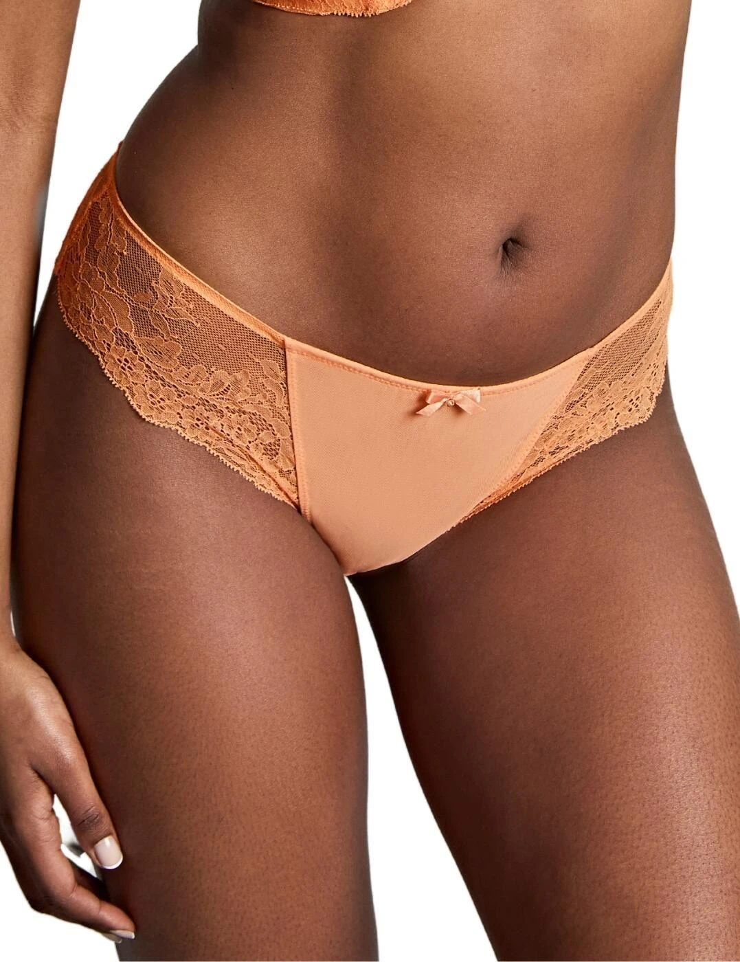 Elevate your enchanting lingerie with the Ana Brazilian brief by Panache, where sophistication meets allure in an enticing design. Featuring a curve-hugging mid-rise waist, these briefs offer cheeky rear coverage to accentuate your silhouette and exude feminine confidence. The opulent stretch lace wraps around your legs, meeting an opaque centre front and upper rear for modesty, while maintaining an overall sheer effect. At the front, a flirty bow detail adds a playful touch, while the soft cotton gusset ensures all-day comfort. Pair with matching Ana lingerie for cohesive allure.