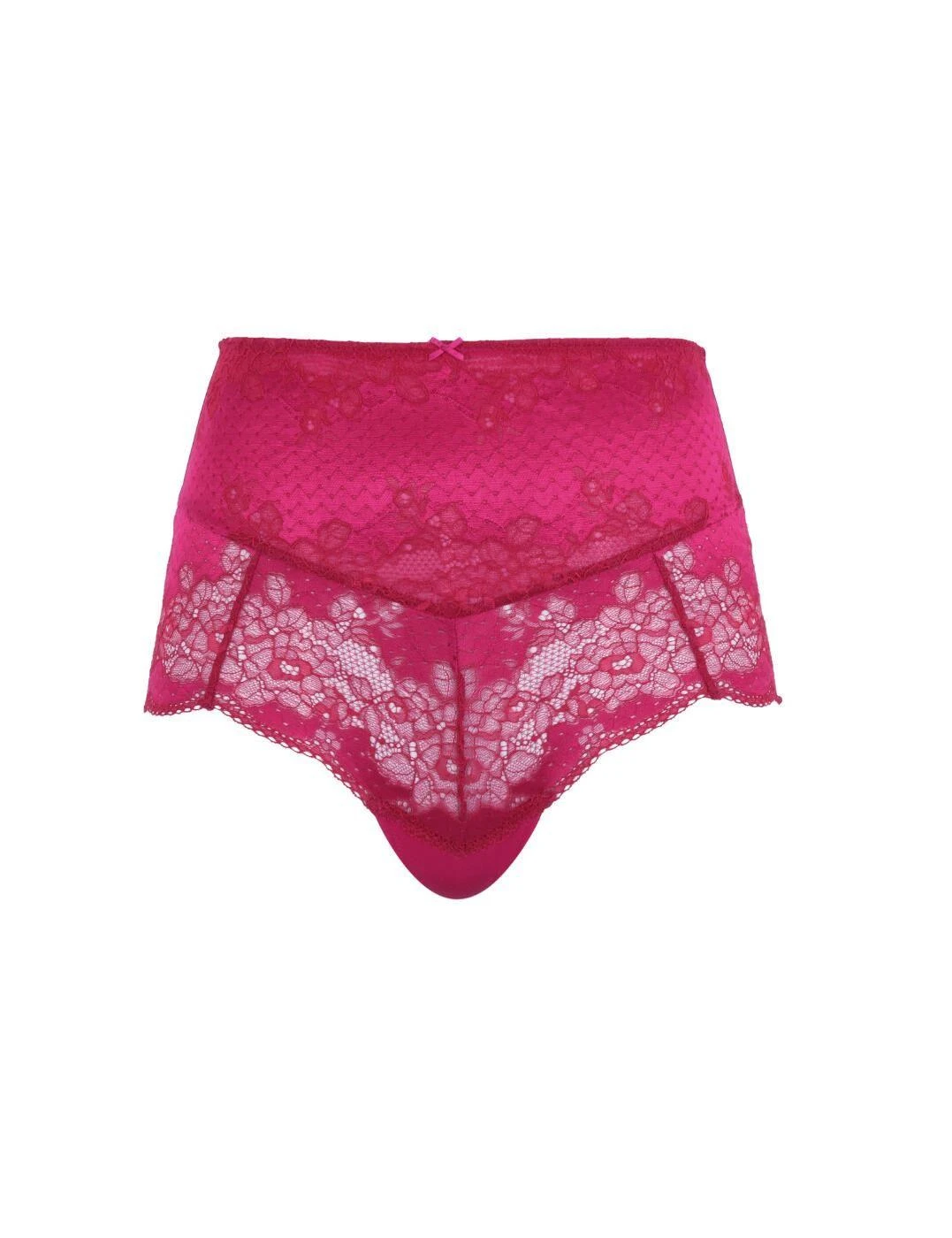 Discover the elegance of the Panache Clara high-waisted brief, a divine addition to your lingerie drawer. This piece expertly combines full support with supreme femininity. With its high waist for a flattering fit and moderate rear coverage, it ensures comfort all day. The front showcases a beautiful semi-sheer panel adorned with intricate two-toned lace, adding an extra touch of glamour. A delicate bow at the centre enhances its sophisticated appeal. Opt for the matching set from the Clara range to achieve a chic look. Ideal for those who appreciate a blend of style and comfort.