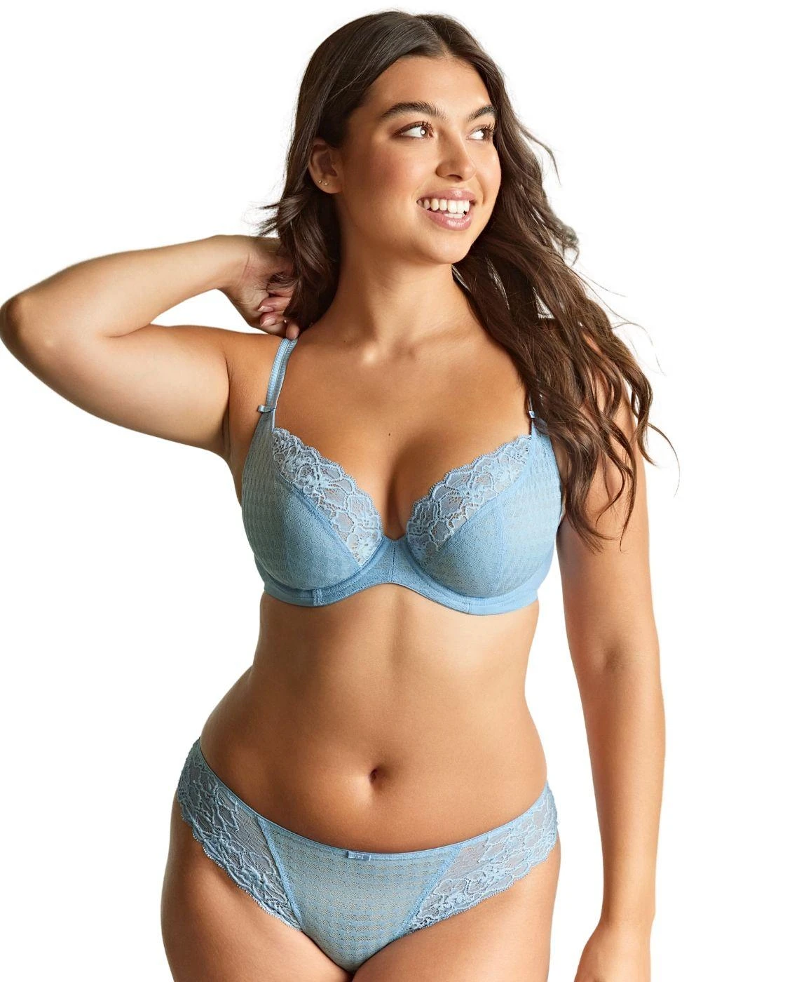 The Panache Envy Brazilian brief is the epitome of glamour for the discerning woman. This brief is meticulously designed to flatter with a low-rise waist, ensuring a smooth silhouette, while offering medium rear coverage that combines comfort with a hint of allure. The design features a mix of opaque and semi-sheer stretch lace, creating a perfect blend of modesty and sensuality. Adorned with a charming mini bow, it’s a piece that captures the essence of femininity. Crafted from premium materials, it promises both durability and comfort. Perfect for elevating any lingerie collection, the Panache Envy Brazilian brief pairs beautifully with other items from the Envy range which are also available.