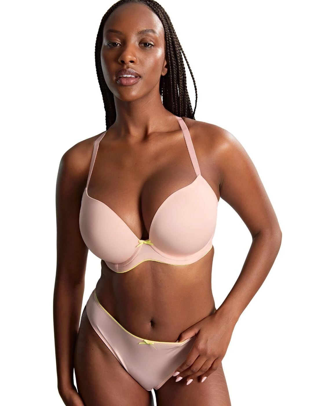 Welcoming the new Panache Faith plunge bra, a fashion-forward lingerie piece designed to elevate style and boost confidence. Featuring moulded cups, underwired support, and adjustable straps for a comfortable fit, its elegant design is enhanced by a delicate bow finish. Complete the look with matching lingerie for a sophisticated ensemble. Perfect for women seeking stylish, confidence-boosting lingerie, the Panache Faith bra combines comfort, support, and style for the ultimate lingerie upgrade.