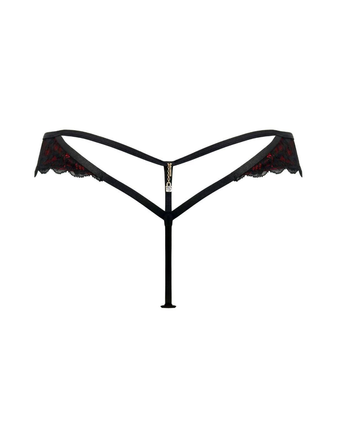 Add a touch of seduction and sass to your lingerie collection with the Pour Moi Desire thong. Crafted with a low-rise waist and a high leg rise, this thong beautifully accentuates your curves and sits comfortably on your hips. The delicate floral lace adds a touch of romance, while the open strappy back adds an element of surprise. But what sets this thong apart is the elegant gold lock and key charm adorning the back, adding a glamourous touch to this piece. And let’s not forget about the charming bows at the centre front, adding a playful and flirty vibe. With minimal rear coverage, this thong is perfect for showing off your beautiful figure and feeling confident in your own skin. You can complete the look with our matching coordinates, creating a stunning and cohesive lingerie set.