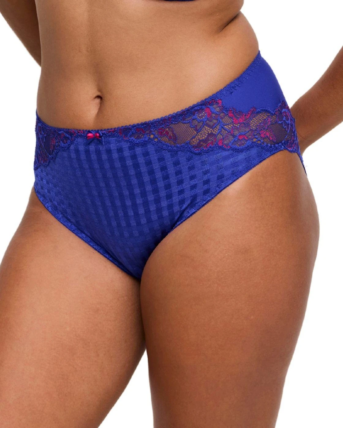 Add some flair to your lingerie drawer with the popular Madison range by Prima Donna. These full briefs sport the stylish checked pattern which is further complimented by stunning lace details. The full brief offers good rear coverage for someone who wants a comfortable brief which also looks stylish. Pair with matching items from the Madison range for a chic look. PLEASE NOTE: This item is restricted from shipping to the USA by the manufacturer.