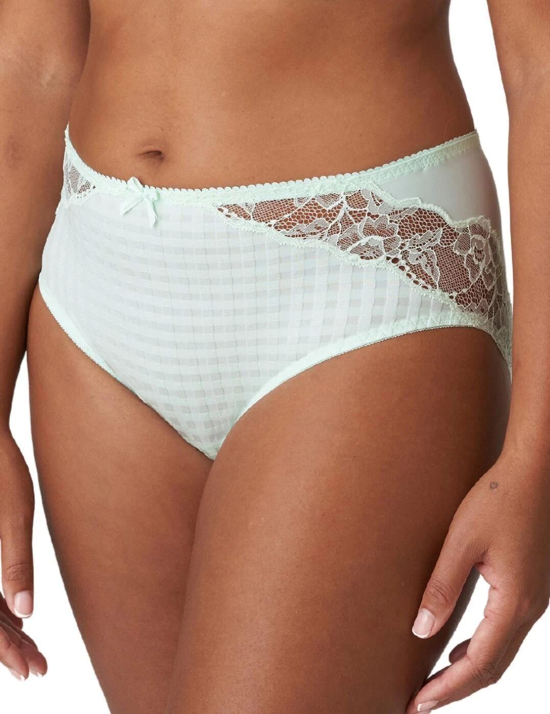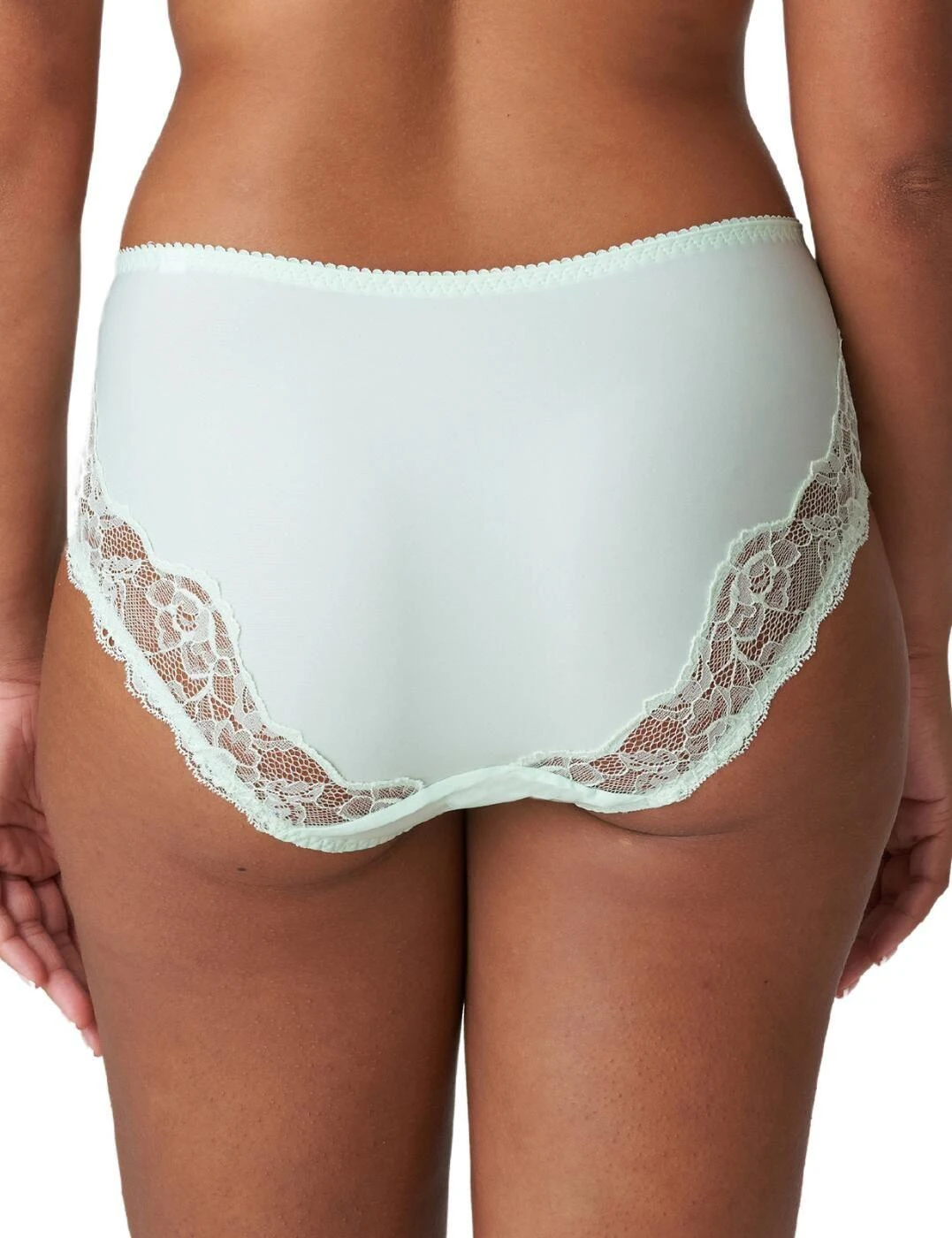 Step into an enchantingly feminine look with these luxurious full briefs from Prima Donna’s Madison collection! Expertly crafted for elegance and comfort, these briefs are a must have! The gorgeous semi-sheer lace panels take centre stage, framing your curves irresistibly and subtly revealing your skin for a flirty, playful aesthetic that evokes opulence. A mid-rise waist and full rear coverage are supremely flattering, and offer you comfort and confidence no matter where the day takes you! A delicate, eye-catching bow finishes off these briefs beautifully. Pair with a matching bra from the Madison range to take this look to the next level!