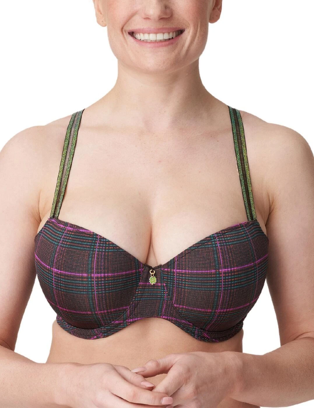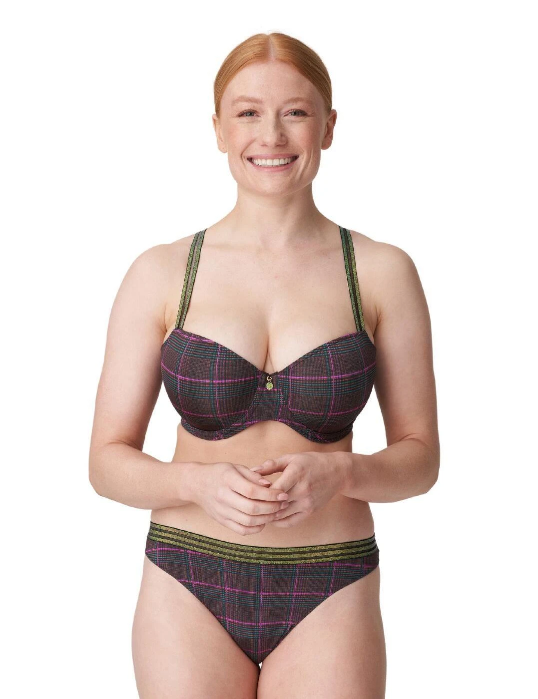 Achieve the perfect silhouette with the Prima Donna Princes Bay padded balcony bra. With a luxurious checkered design, shimmer detail and a classic balcony silhouette, this bra exudes quality and sophistication. The padded cups and underwire offer support and you can enjoy an enhanced bustline and a timeless look. The adjustable shoulder straps and hook and eye closure ensure a secure fit that will keep you feeling confident all day. Complete the look with stylish coordinating lingerie from the glamorous Princes Bay collection by Prima Donna.