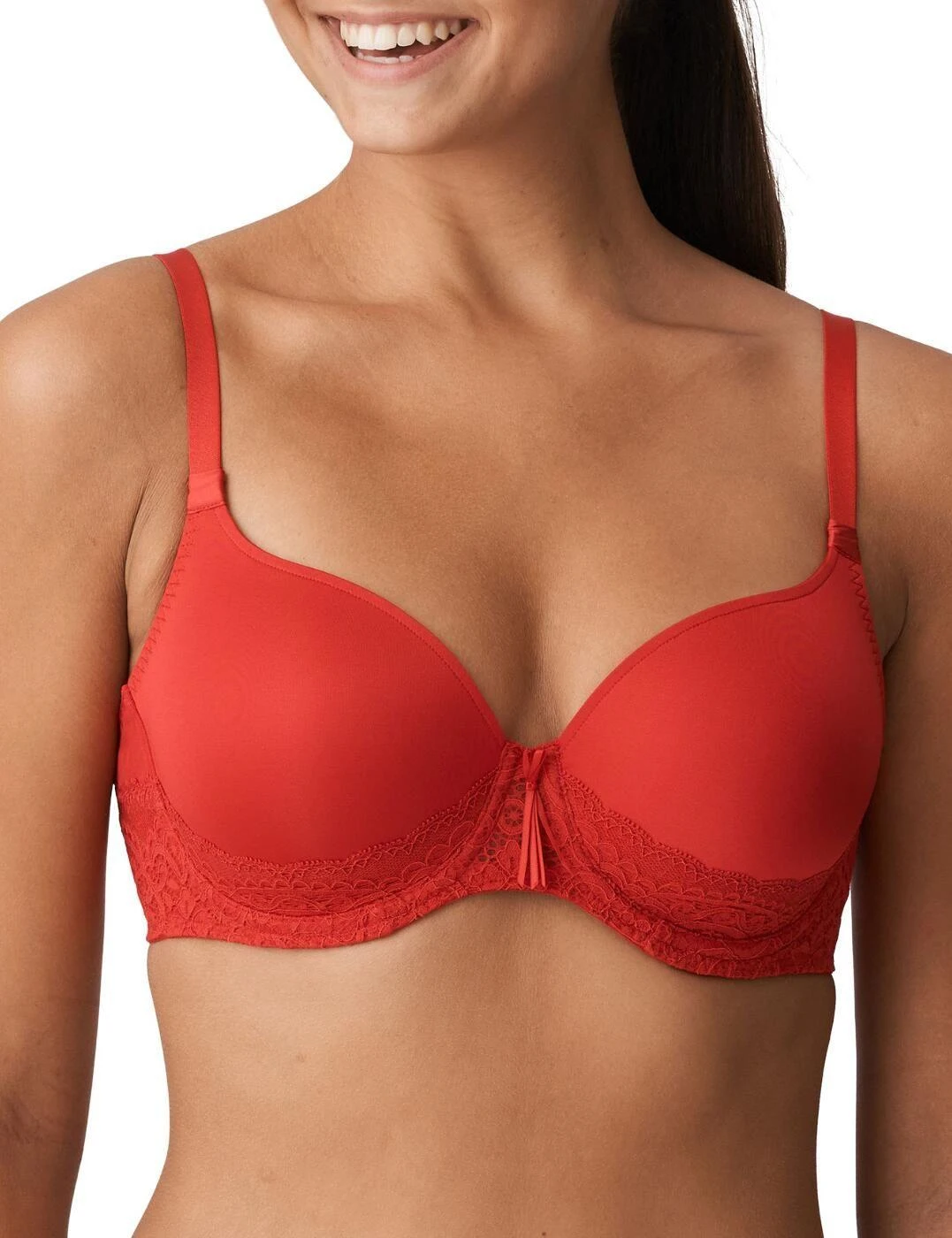 Look and feel gorgeous in this heart-shaped bra from the I Do range by Prima Donna. With elegant lace on the bottom continuing around to the back for a feminine look. The padded heart-shaped cups lift and centre the breasts to create a wonderful rounded shape. Made from a soft material this bra is seamless making it perfect for any outfit. Adjustable straps offer a perfect fit while the underwiring provides amazing support. Gorgeous details like the bow to the centre finish this bra off beautifully. Pair this bra with matching items to complete the look.