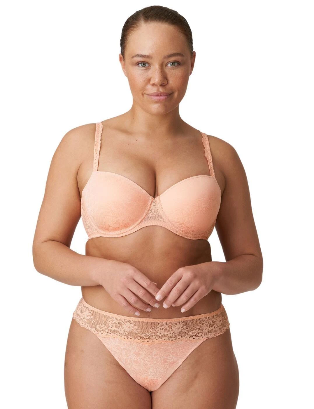 Look no further than the Prima Donna Twist Playa Amor padded balcony bra. This luxury bra is designed to accentuate your natural shape and provide the utmost support, all while keeping you feeling confident and fabulous. With its flattering balcony style, this bra offers a retro delicate lace centre front that will transport you to a vintage dream. The underwired support ensures that you’ll feel secure and comfortable all day long, while the padded cups offer a subtle sheen finish that adds a touch of glamour to any outfit. It’s invisible under white garments, so you can rock that crisp white blouse without worrying about any unwanted lines. Featuring fully adjustable straps and a secure hook and eye fastening that has your back! Complete the look with our matching chic coordinates and create a lingerie set that will make you feel like a true femme fatale.