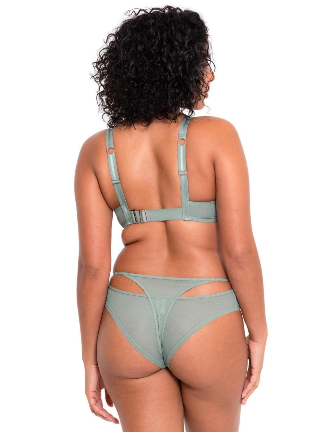 Embrace new styles and designs such as the unique Brazilian brief, featured in the Peep Show collection by Scantilly by Curvy Kate. The piece is made entirely from sheer stretch mesh to create a tantalising look. The layering creates a little added modesty along with the moderate rear coverage but the G-string layer adds a more playful edge to this brief without comprising comfort. The leg holes are high cut which visually elongates the legs for a flattering look. Pair with the coordinating deep plunge bra from the Peep Show range for an effortlessly playful look.